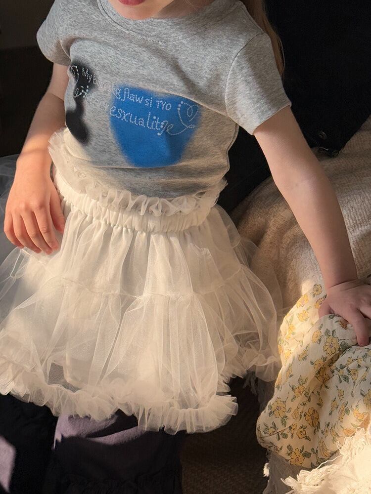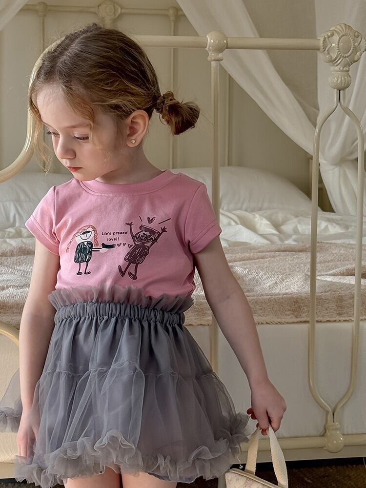 《取寄》 フレンチプリントTシャツ (ライトピンク/グレー/ブラック/ピンク) BOBI 2025春 韓国子供服 トップス カットソー Tシャツ 半袖 動物 アニマル (90~150cm)