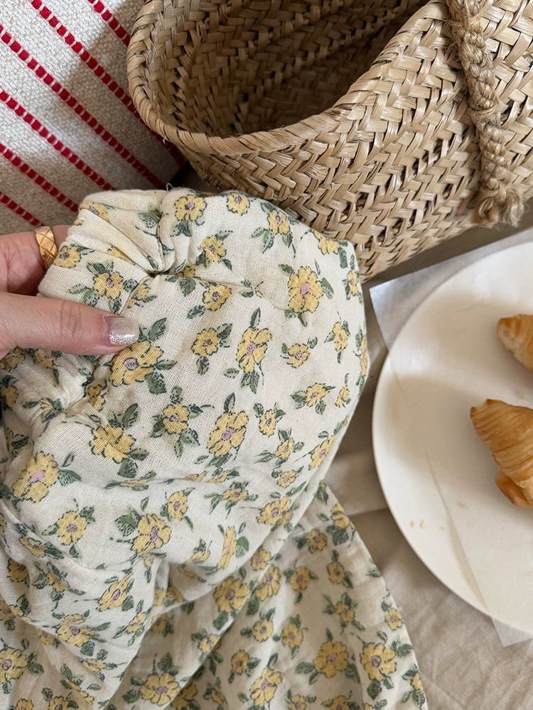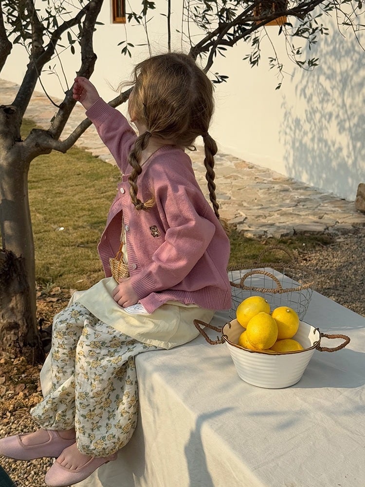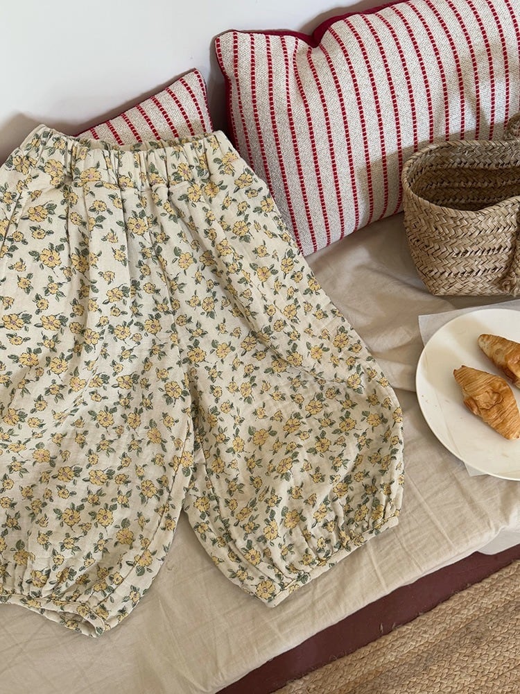 《取寄》 小花柄コットンガーゼ調パンツ (アイボリー) BOBI 2025春 韓国子供服 パンツ ズボン ボトムス 花柄 ミモザ 裾絞り イージーパンツ (90~150cm)