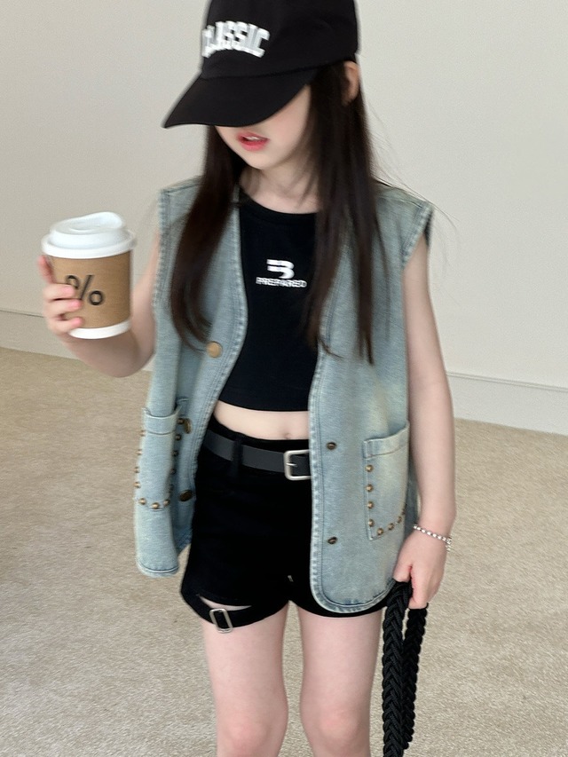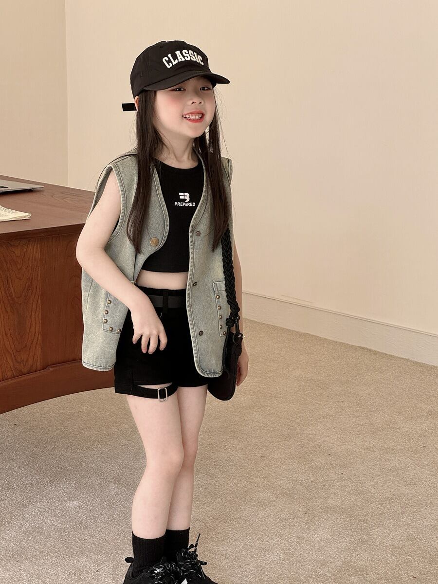 ★即納★ ホットガールショートパンツ (ブラック)/140 【送料無料】 QBSH 2025夏 韓国子供服 ボトムス パンツ ズボン 短パン ホットパンツ ガーターベルト 女の子