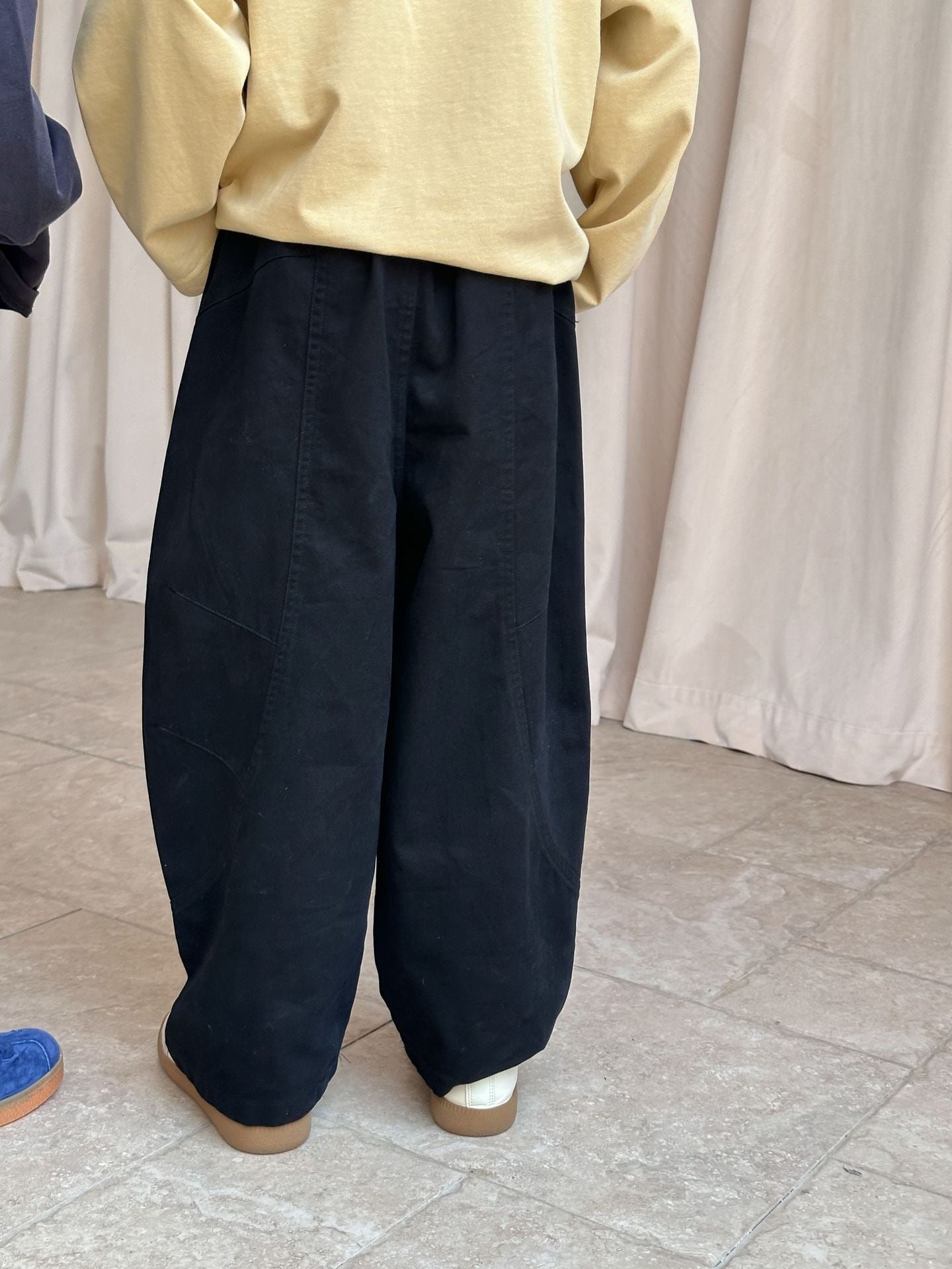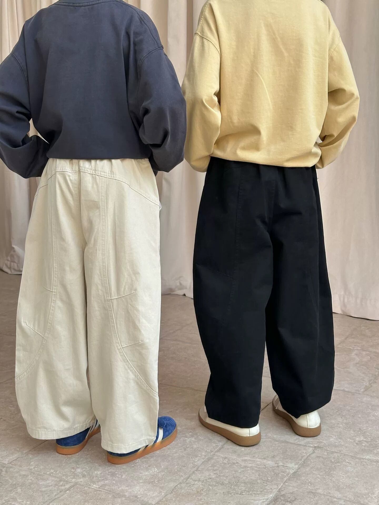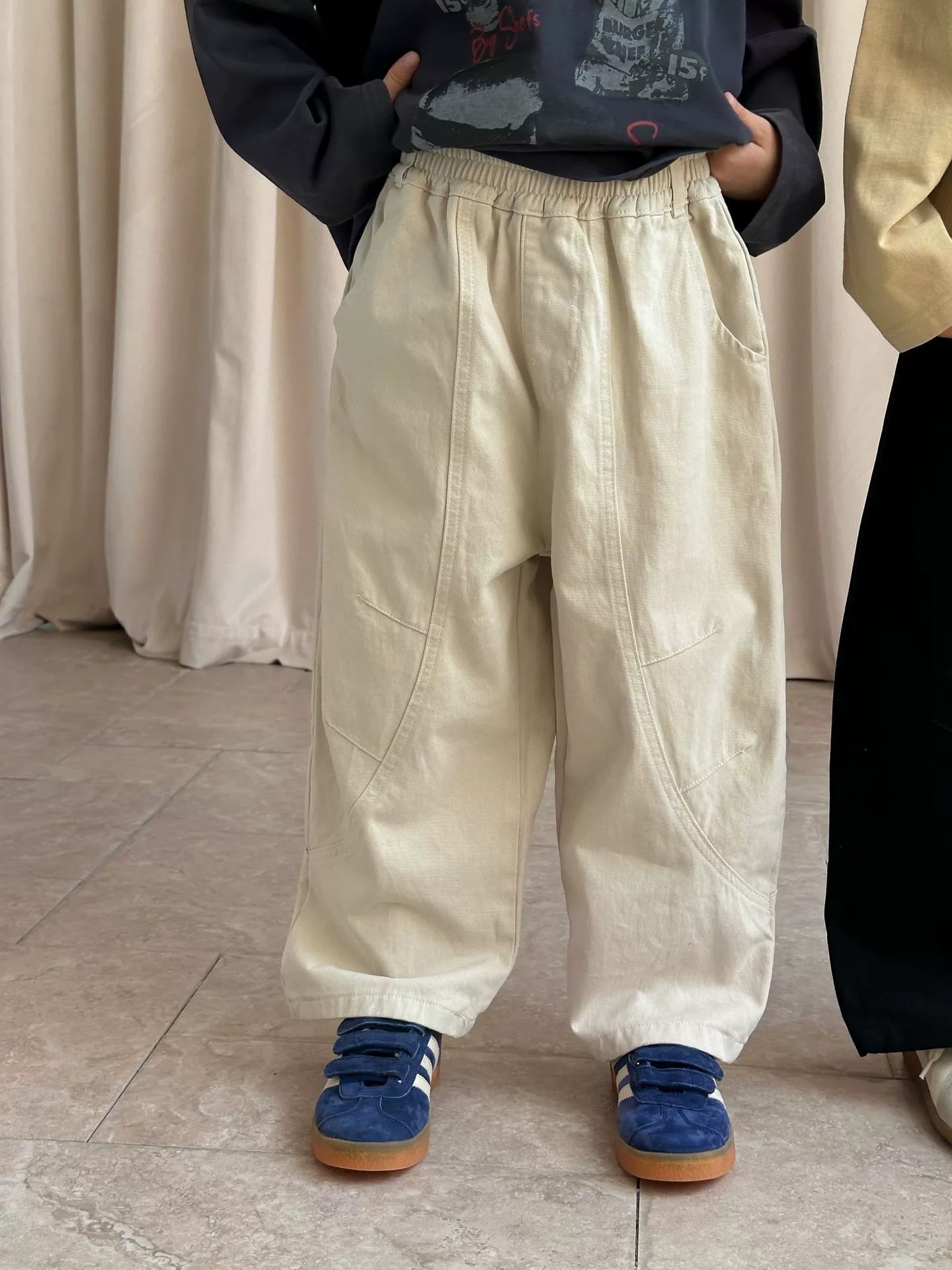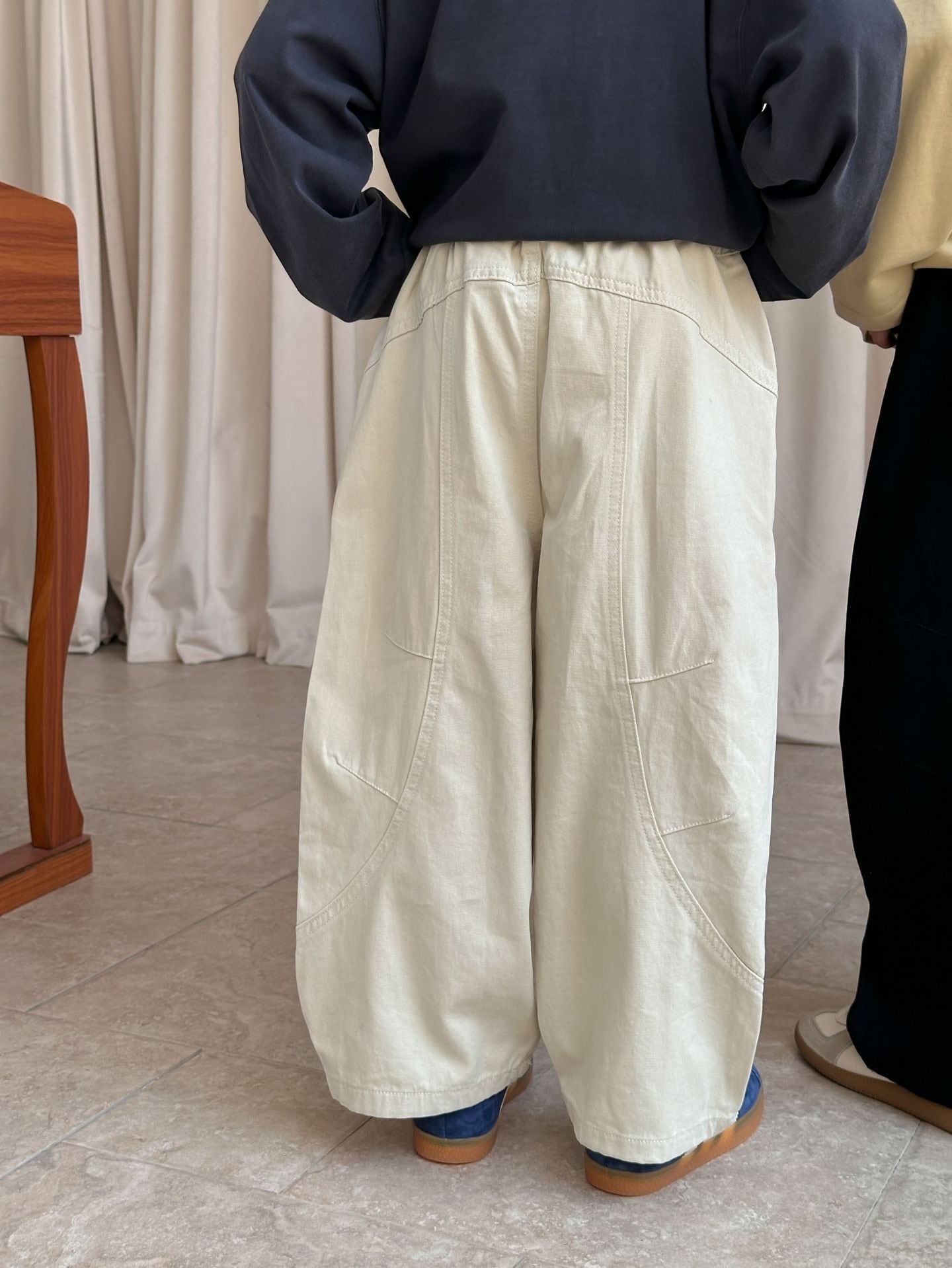 《取寄》ステッチテーパードパンツ (アイボリー/ブラック) XDJK 2025秋 韓国子供服 ボトムス パンツ チノパン コクーンパンツ 綿パン ワイドパンツ バレルレッグパンツ (90~150cm)