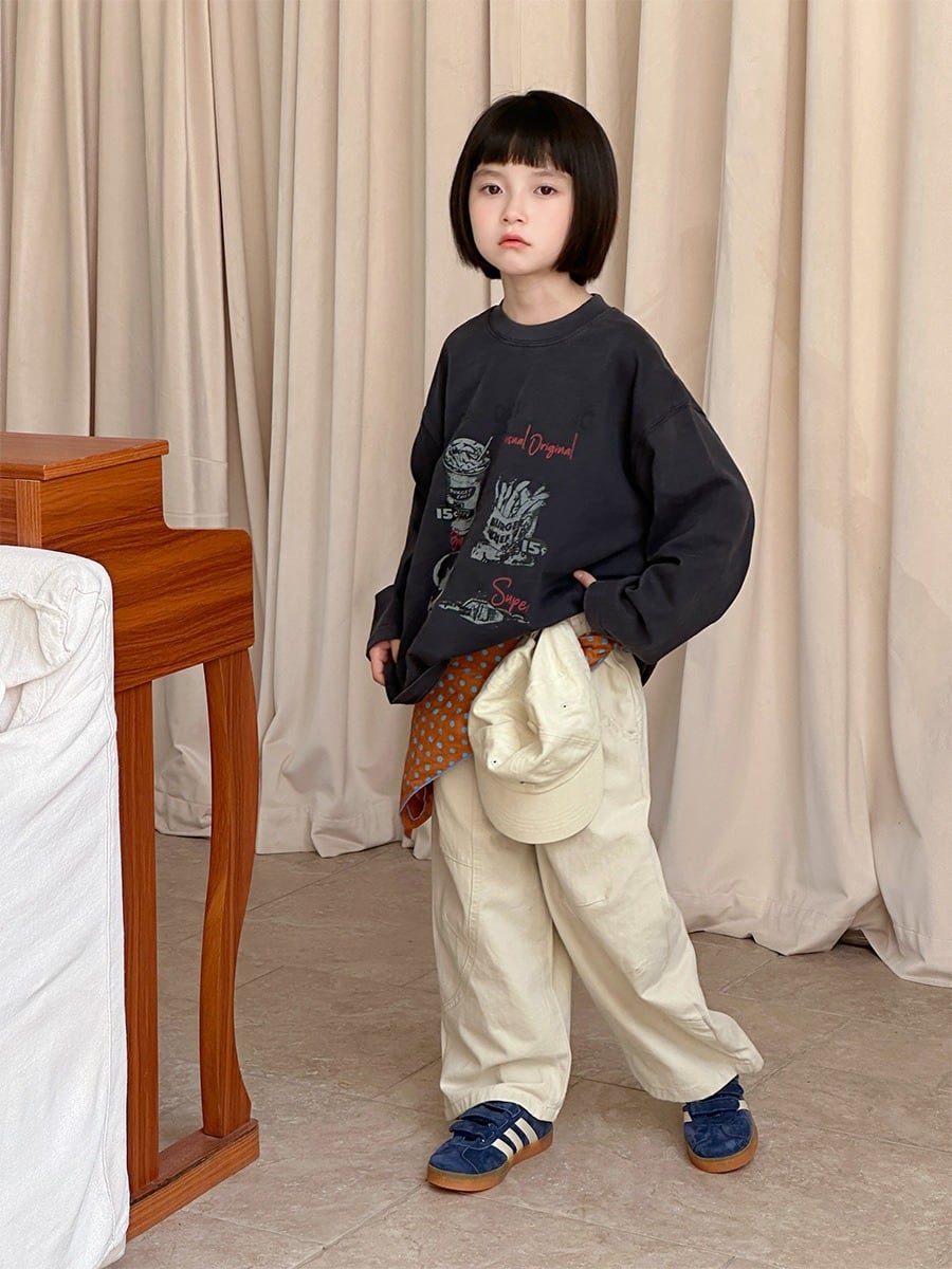 《取寄》ステッチテーパードパンツ (アイボリー/ブラック) XDJK 2025秋 韓国子供服 ボトムス パンツ チノパン コクーンパンツ 綿パン ワイドパンツ ワークパンツ (90~150cm)