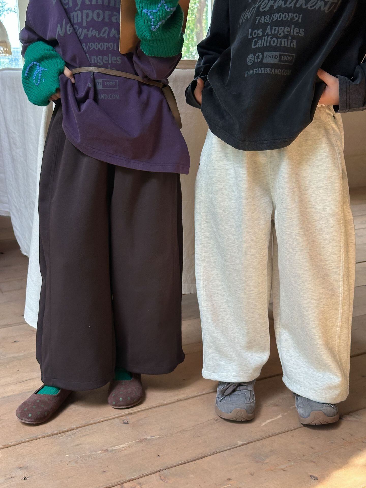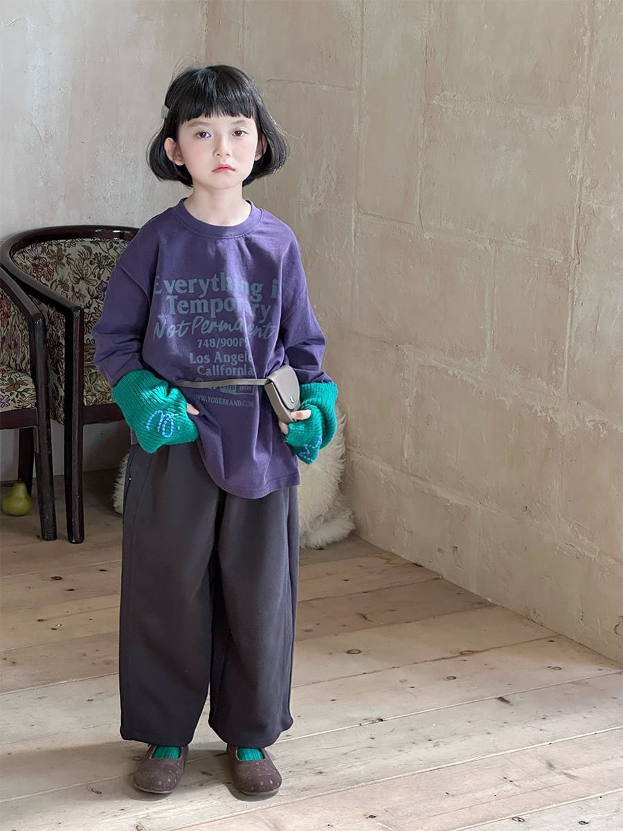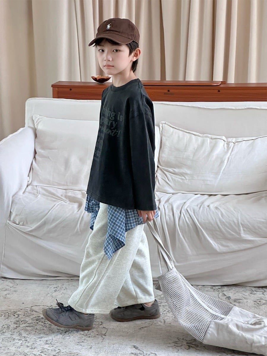 《取寄》オーバーワイドスウェットパンツ (チャコール/ホワイトグレー) XDJK 2025秋 韓国子供服 ボトムス パンツ ポケット ゆるカジ ワイドパンツ オーバーサイズ ルーズフィット (90~150cm)