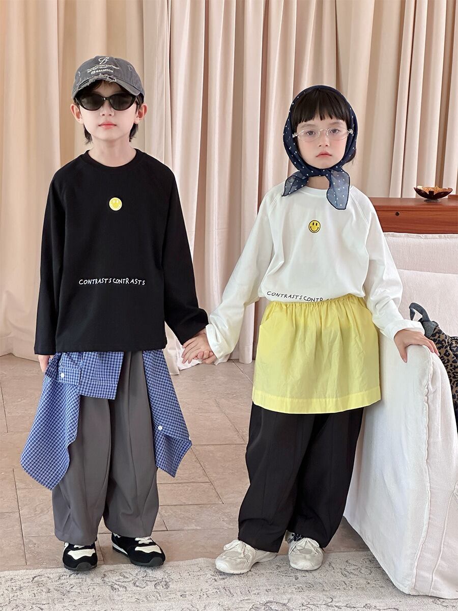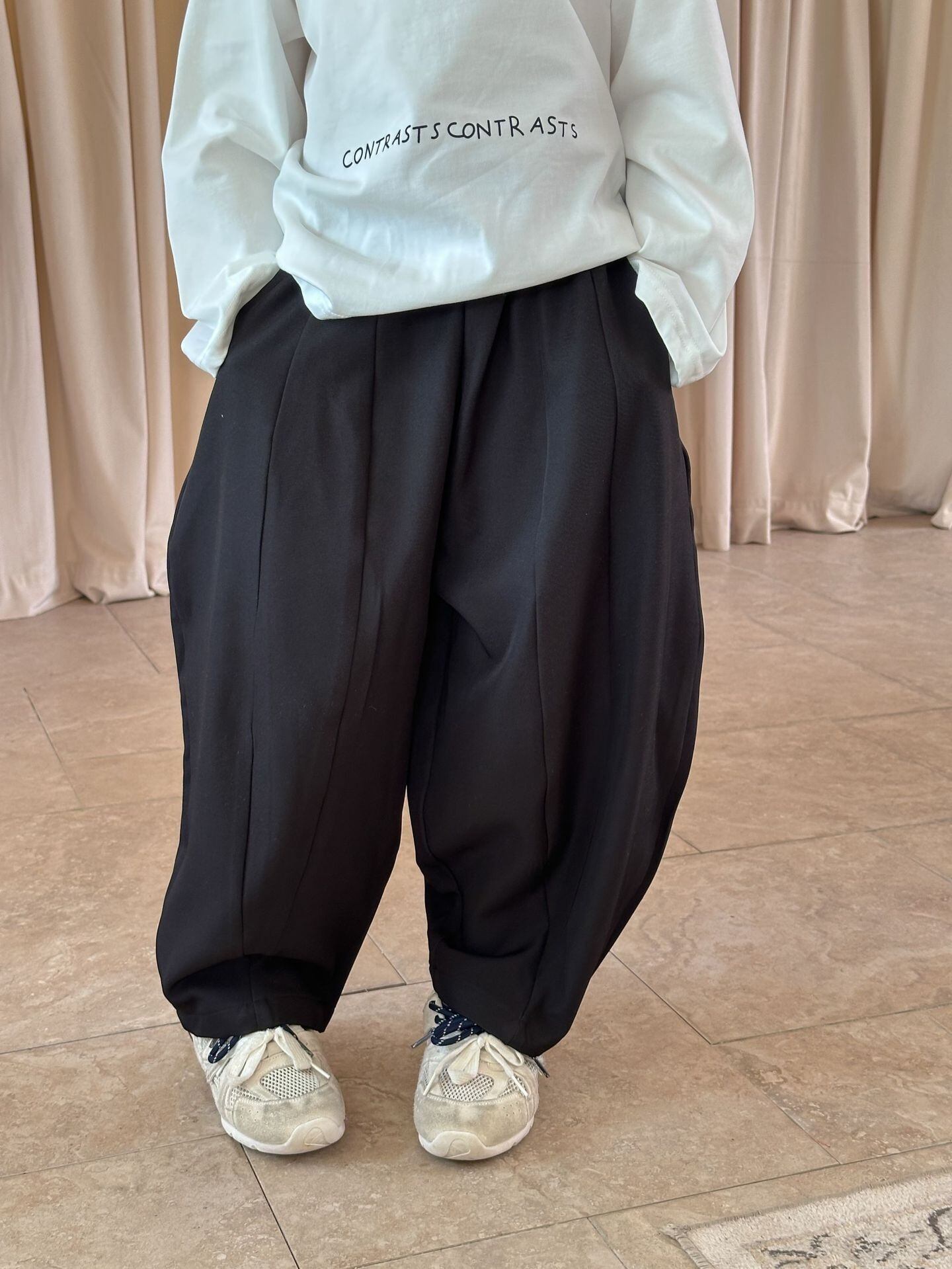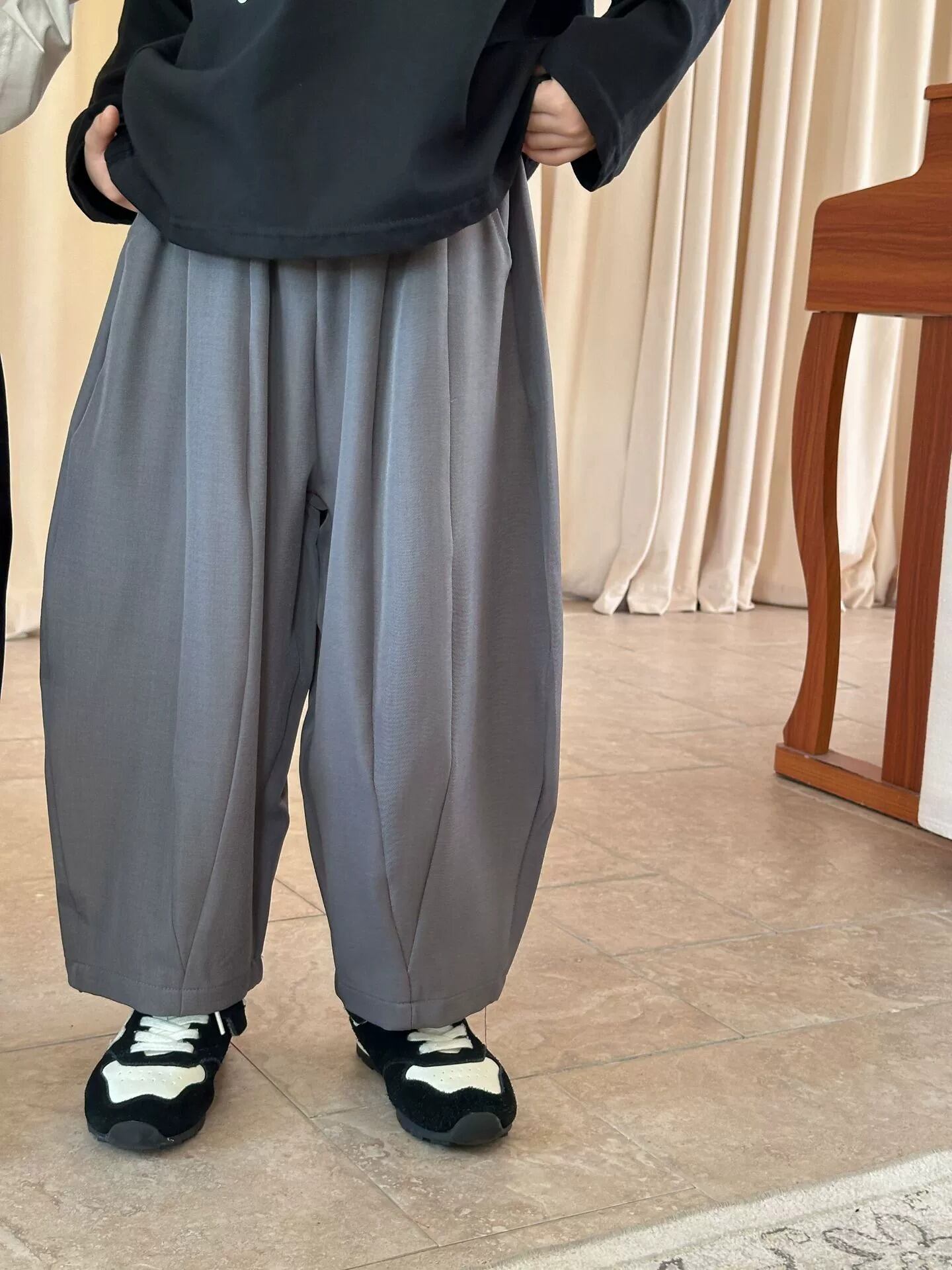 《取寄》コクーンワイドスラックスパンツ (ブラック/グレー) XDJK 2025秋 韓国子供服 ボトムス パンツ ワイドパンツ オーバーサイズ バレルレッグパンツ (90~150cm)