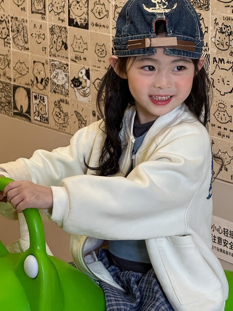 《取寄》 スウェットジップアップパーカー (レッド/ホワイト) BOBI 2025秋 韓国子供服 アウター カーディガン ブルゾン 上着 ジャケット プリントスウェット (90~150cm)