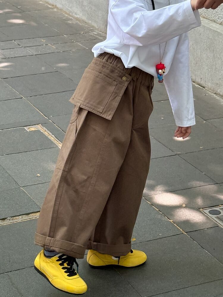 《取寄》 デタッチャブルポケットワイドパンツ (イエロー/カーキ) BOBI 2025秋 韓国子供服 ボトムス パンツ ワークパンツ チノパン ミリタリーパンツ サコッシュ (90~150cm)