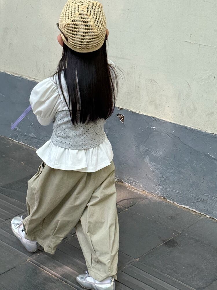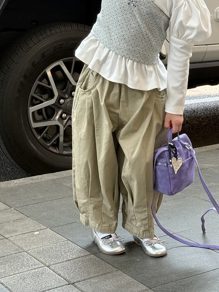 《取寄》 裾タックキャロットパンツ (コーヒー/ベージュ) BOBI 2025秋 韓国子供服 ボトムス パンツ ズボン プリーツ ワイドパンツ バルーンパンツ (90~150cm)