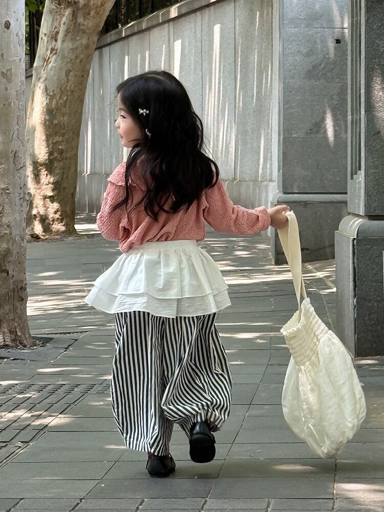 《取寄》 ストライプバレルレッグパンツ (ストライプ) BOBI 2025秋 韓国子供服 ボトムス ズボン ガウチョパンツ 総柄 ワイドパンツ オーバーサイズ (90~150cm)