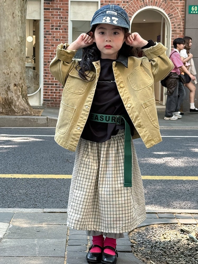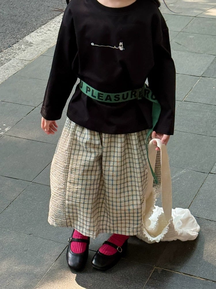 《取寄》 パッチワーク風マルチチェック柄コットンスカート (チェック) BOBI 2025秋 韓国子供服 ボトムス スカート ロングスカート ウエストゴム 女の子 (90~150cm)