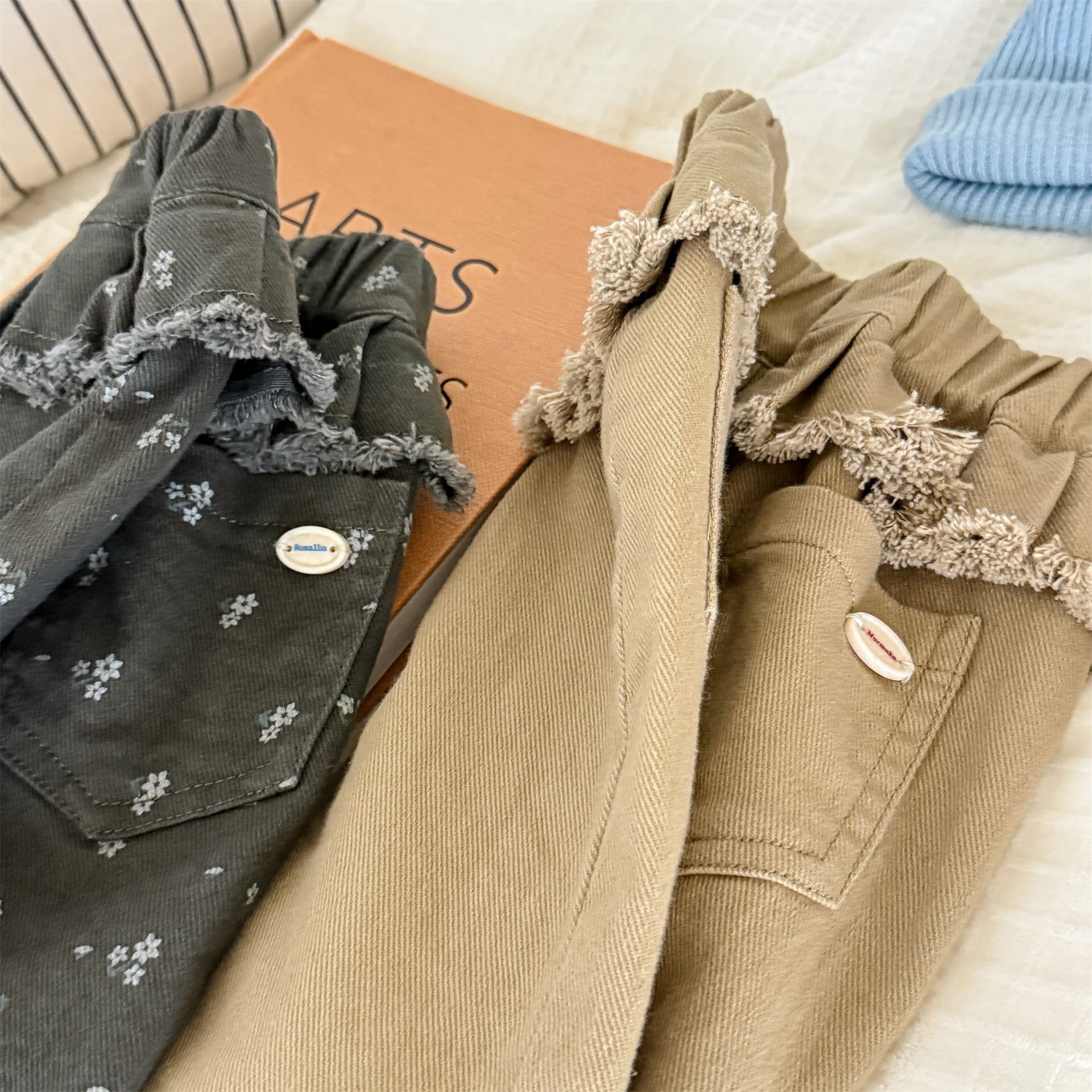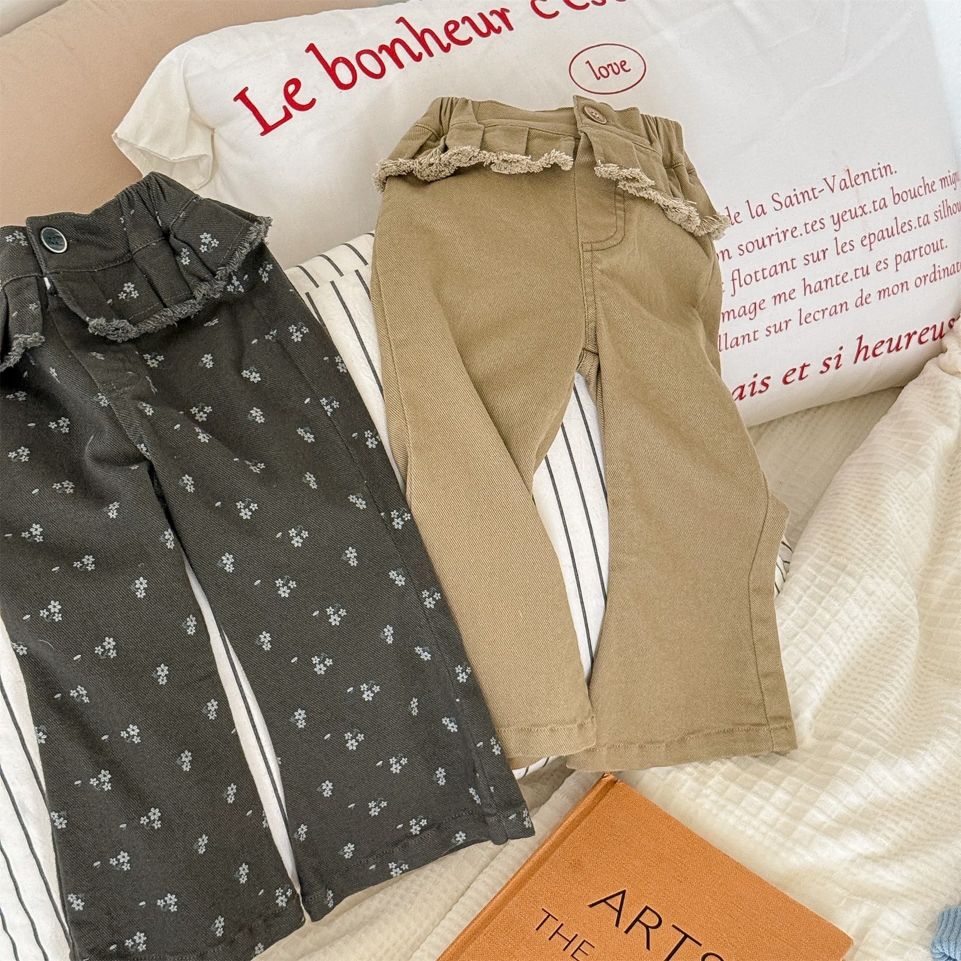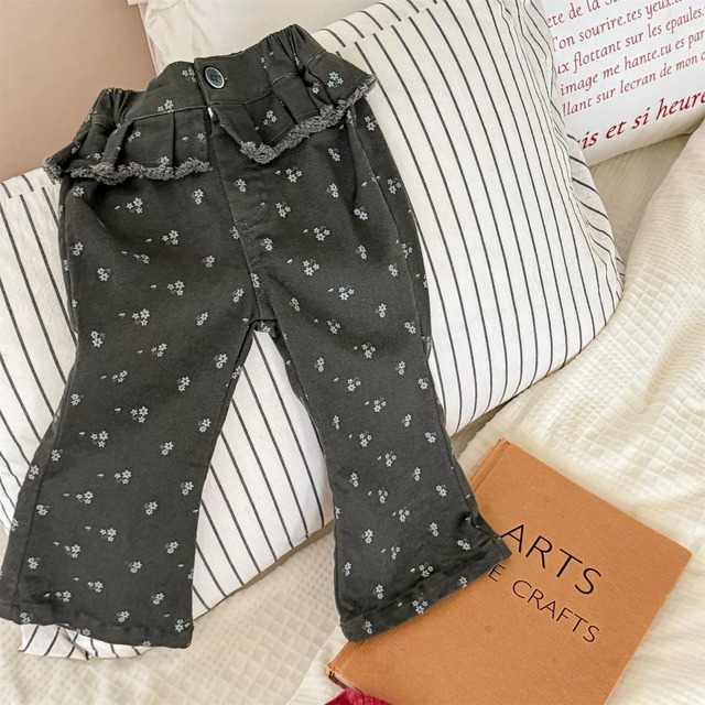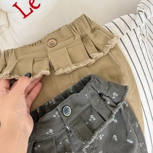 《取寄》 ショートプリーツオーバーラップパンツ (ベージュ/花柄) ADBB 2025秋 韓国子供服 ボトムス ズボン 綿パン チノパン ベルボトム ブーツカット (80~130cm)