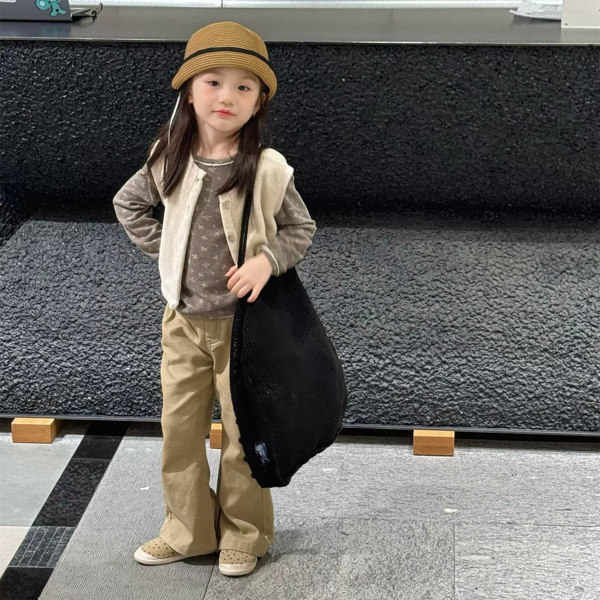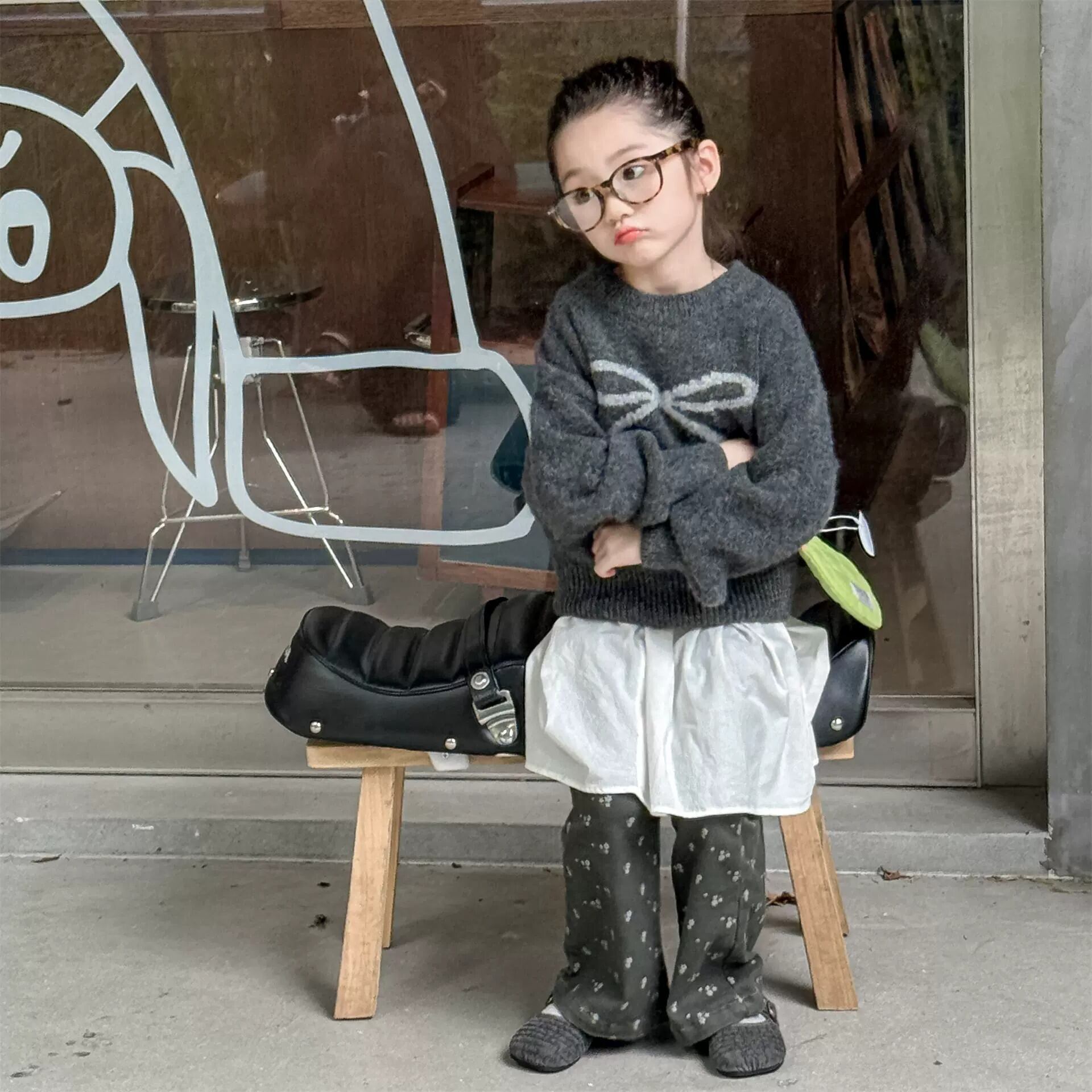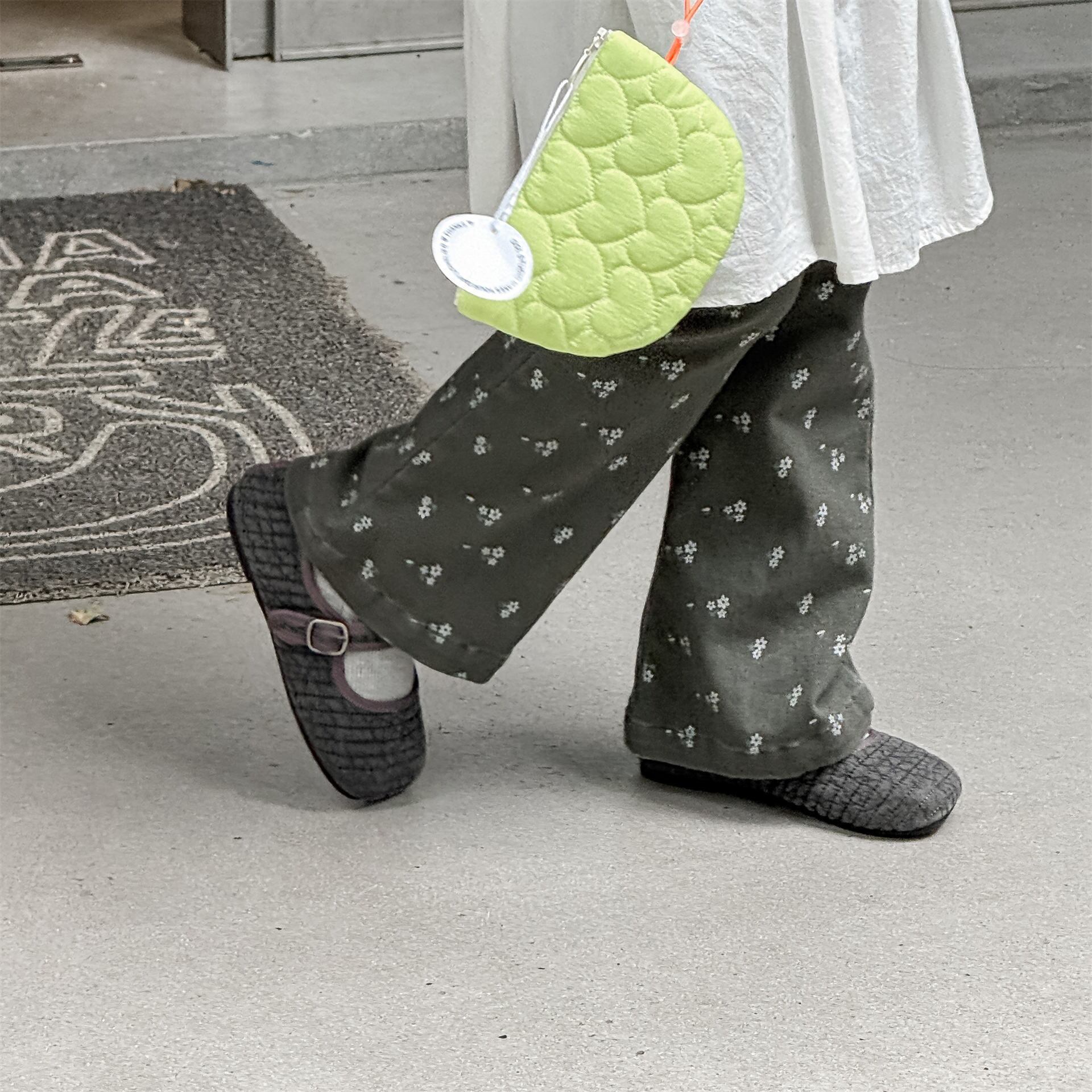 《取寄》 ショートプリーツオーバーラップパンツ (ベージュ/花柄) ADBB 2025秋 韓国子供服 ボトムス ズボン 綿パン チノパン ベルボトム ブーツカット (80~130cm)