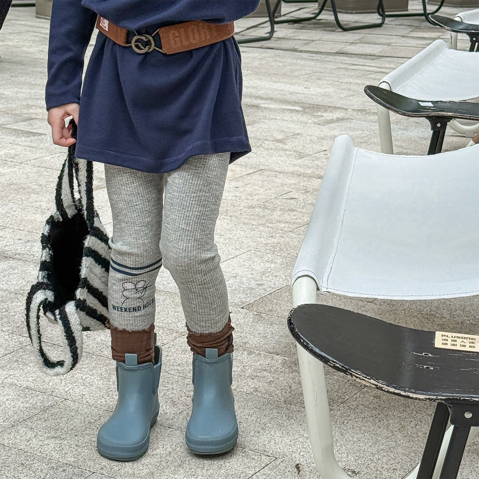 《取寄》 アニマルリブレギンス (グレー/ネイビー/コーヒー) ADBB 2025秋 韓国子供服 ボトムス レギンス レギパン スパッツ ネズミ ゾウ ネコ (80~130cm)