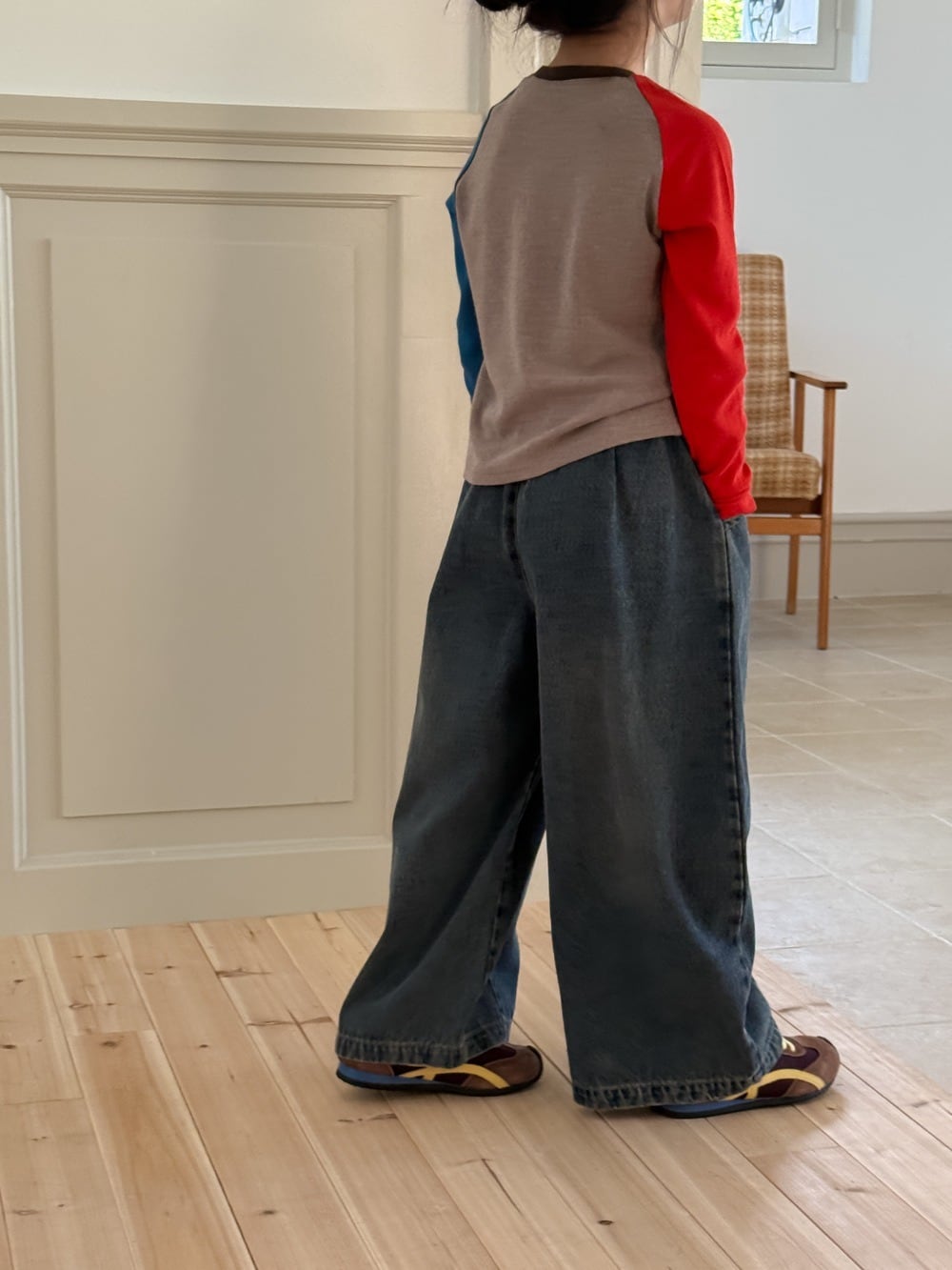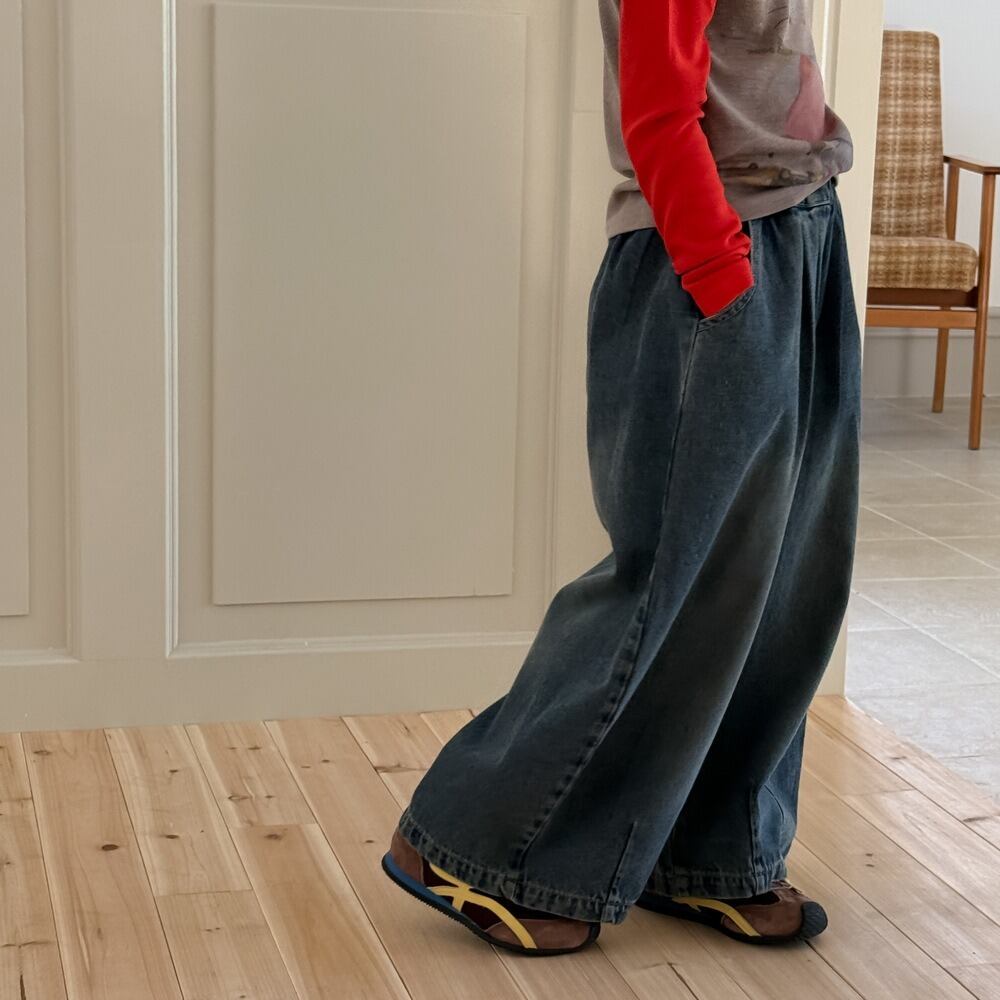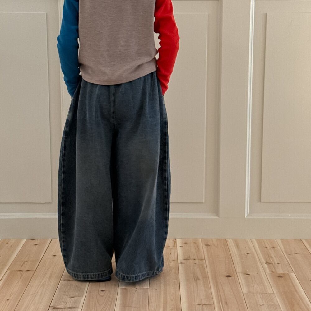《取寄》タック入りバレルレッグデニムパンツ (ブルー) KMAI 2025秋 韓国子供服 ボトムス パンツ オーバーサイズ ワイドパンツ バギーパンツ ジーパン ジーンズ (90~150cm)