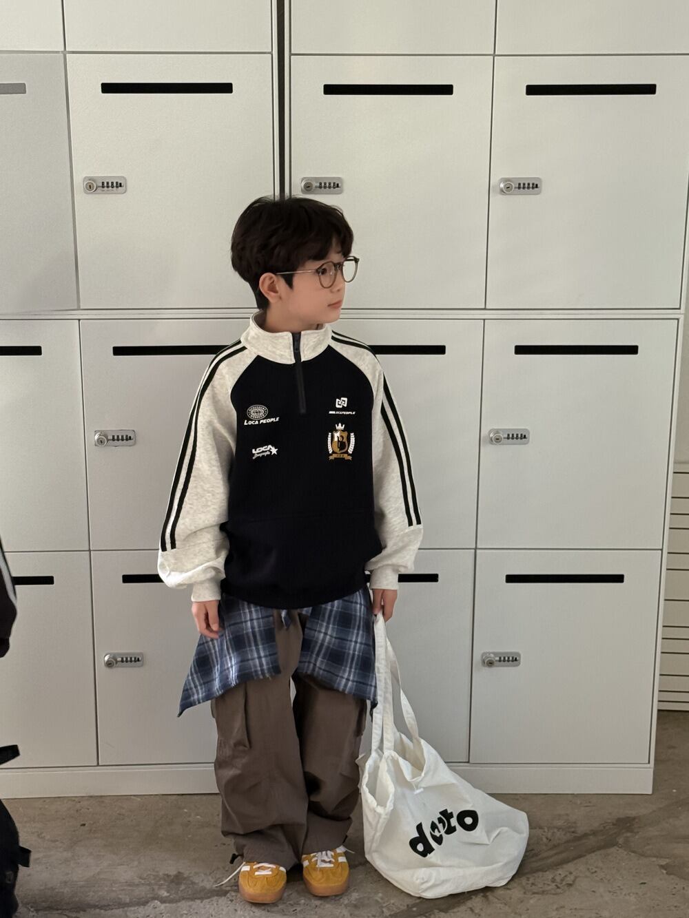 《取寄》ラグランポロジップスウェット (グレー/ネイビー) KMAI 2025秋 韓国子供服 トップス カットソー トレーナー スウェット プルオーバー スポカジ (90~150cm)