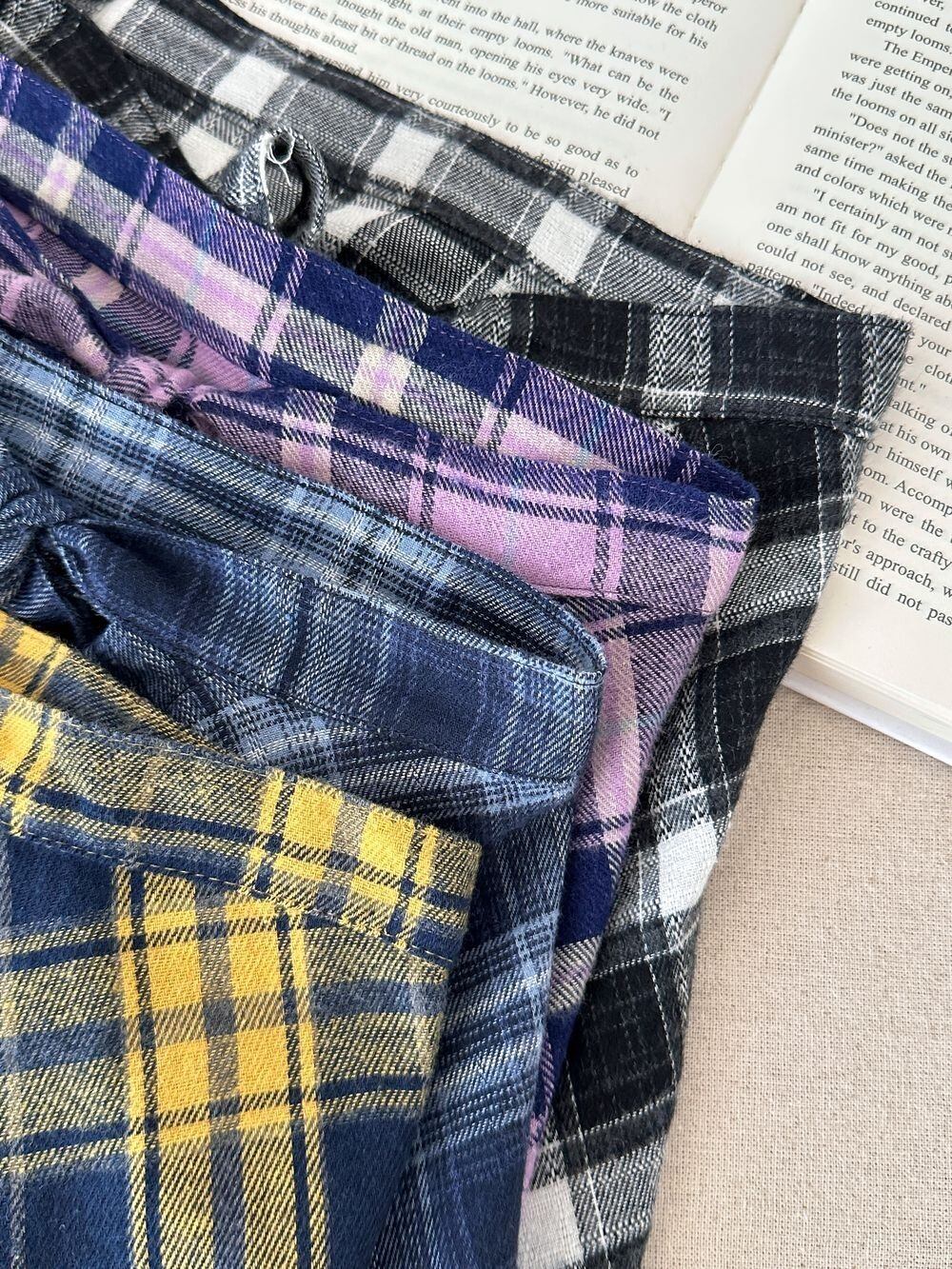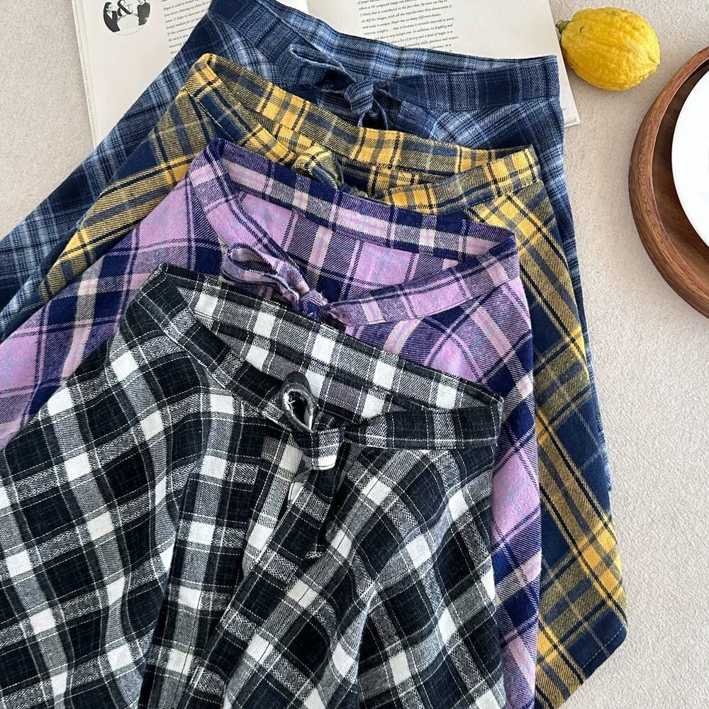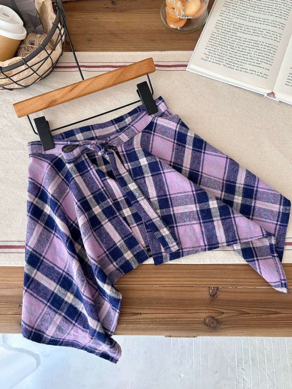 《取寄》チェック柄シャツ風腰巻き (ブラック/パープル/ブルー/イエロー) KMAI 2025秋 韓国子供服 ボトムス 腰巻きスカート アクセサリー 付け裾 ラップスカート サッシュ エプロン 重ね着 (90~150cm)