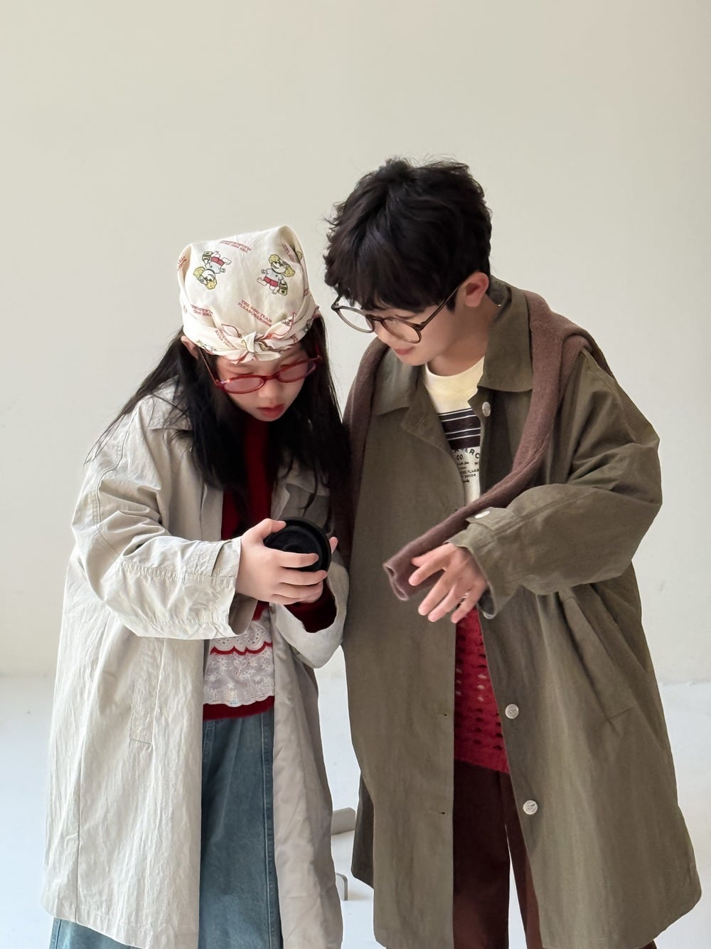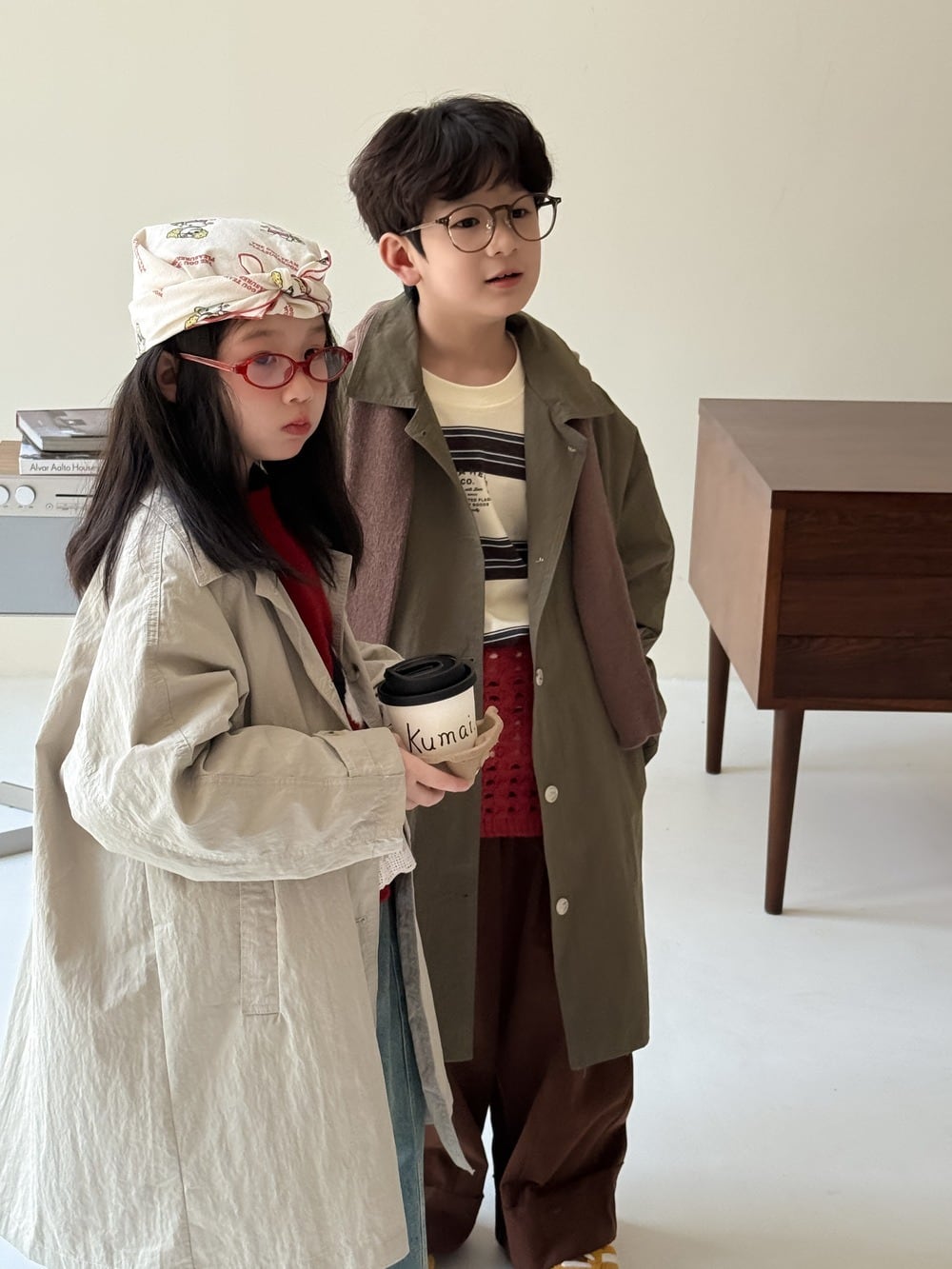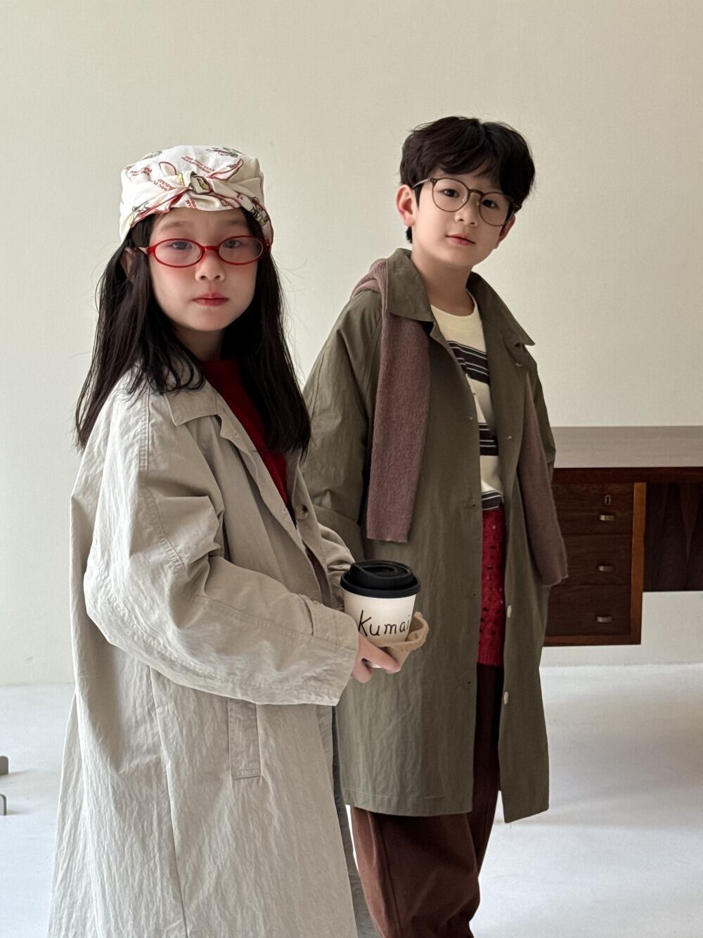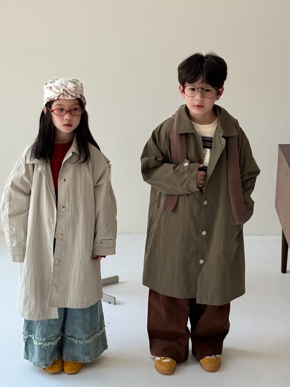 《取寄》薄手チェスターコート (スモークホワイト/カーキ) KMAI 2025秋 韓国子供服 アウター ジャケット ステンカラーコート 無地 トレンチコート ライミドルコート (90~150cm)