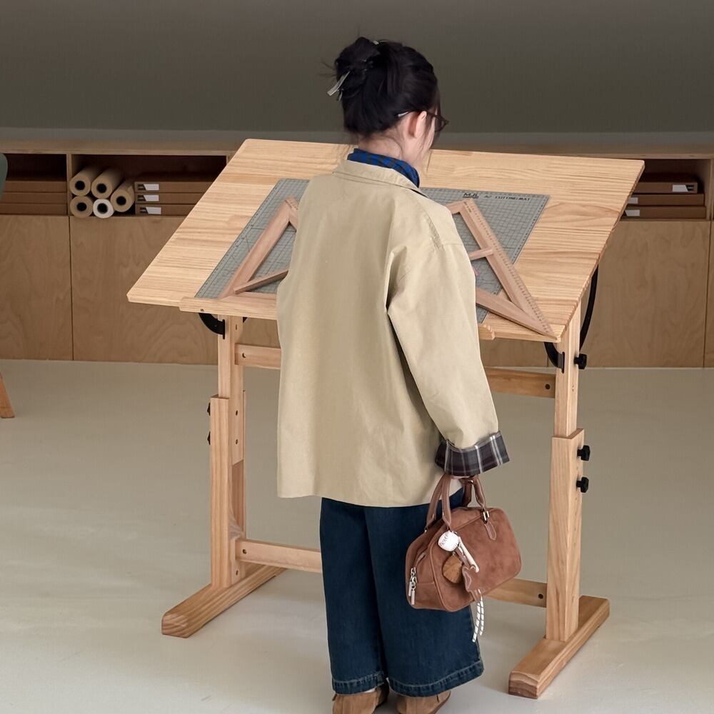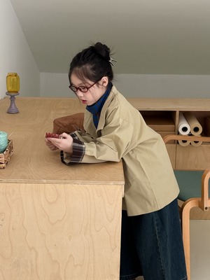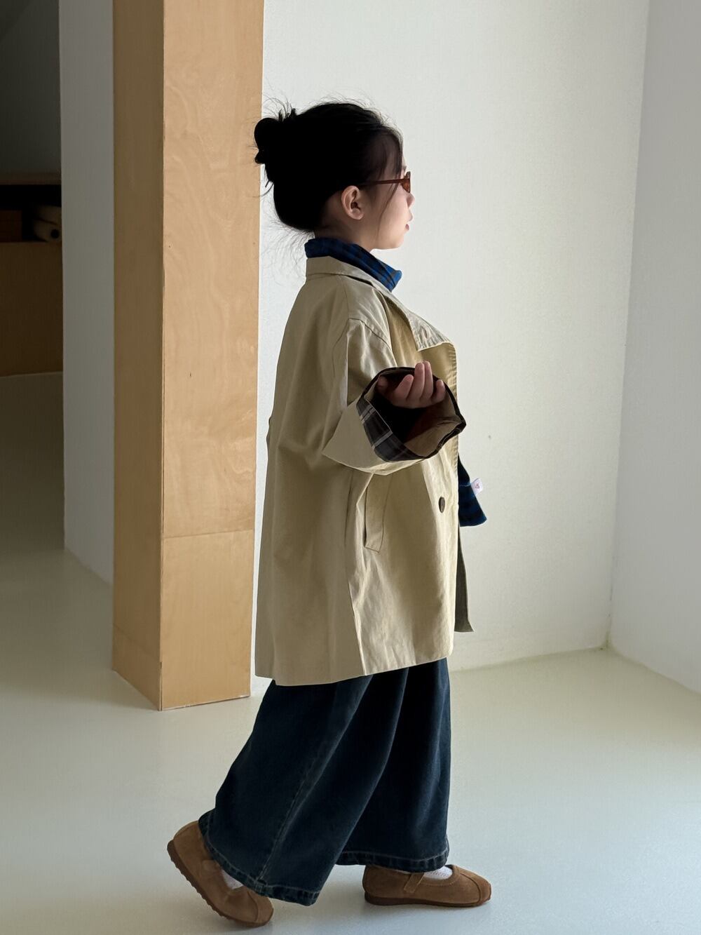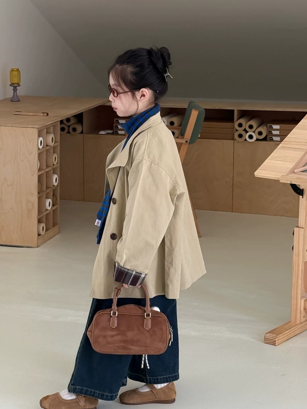 《取寄》裾折り返しチェックトレンチコート (ベージュ) KMAI 2025秋 韓国子供服 アウター ジャケット コート レトロ ショートトレンチ チェック (90~150cm)