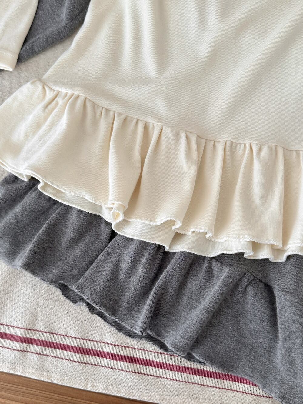 《取寄》裾フリルカットソー (アイボリー/グレー) KMAI 2025秋 韓国子供服 トップス カットソー ロンT Tシャツ 長袖 重ね着 女の子 無地 (90~150cm)