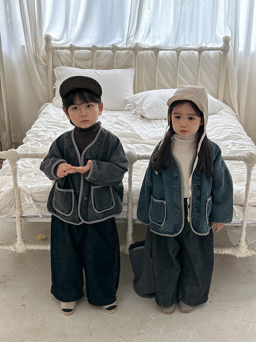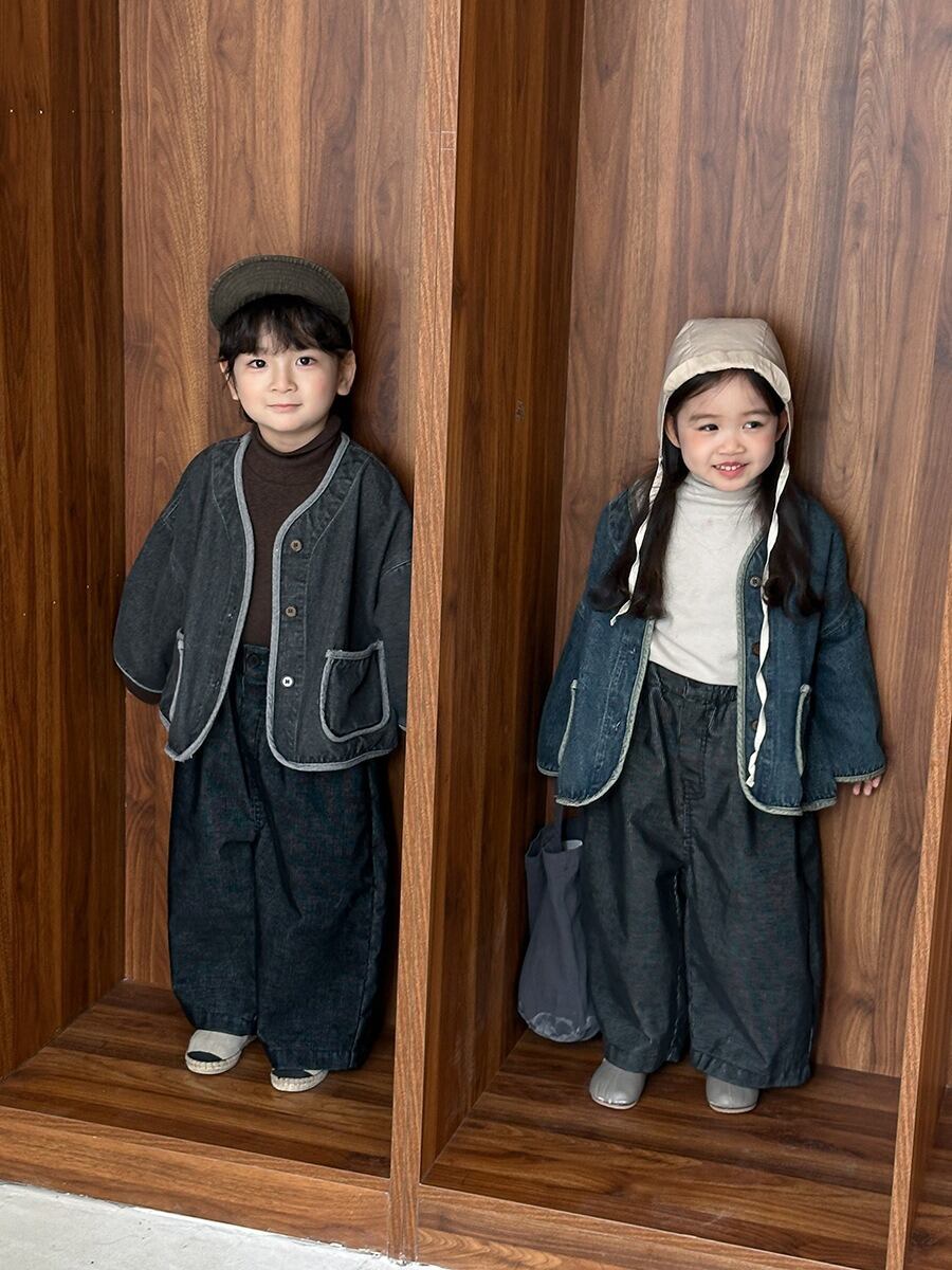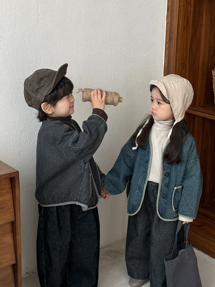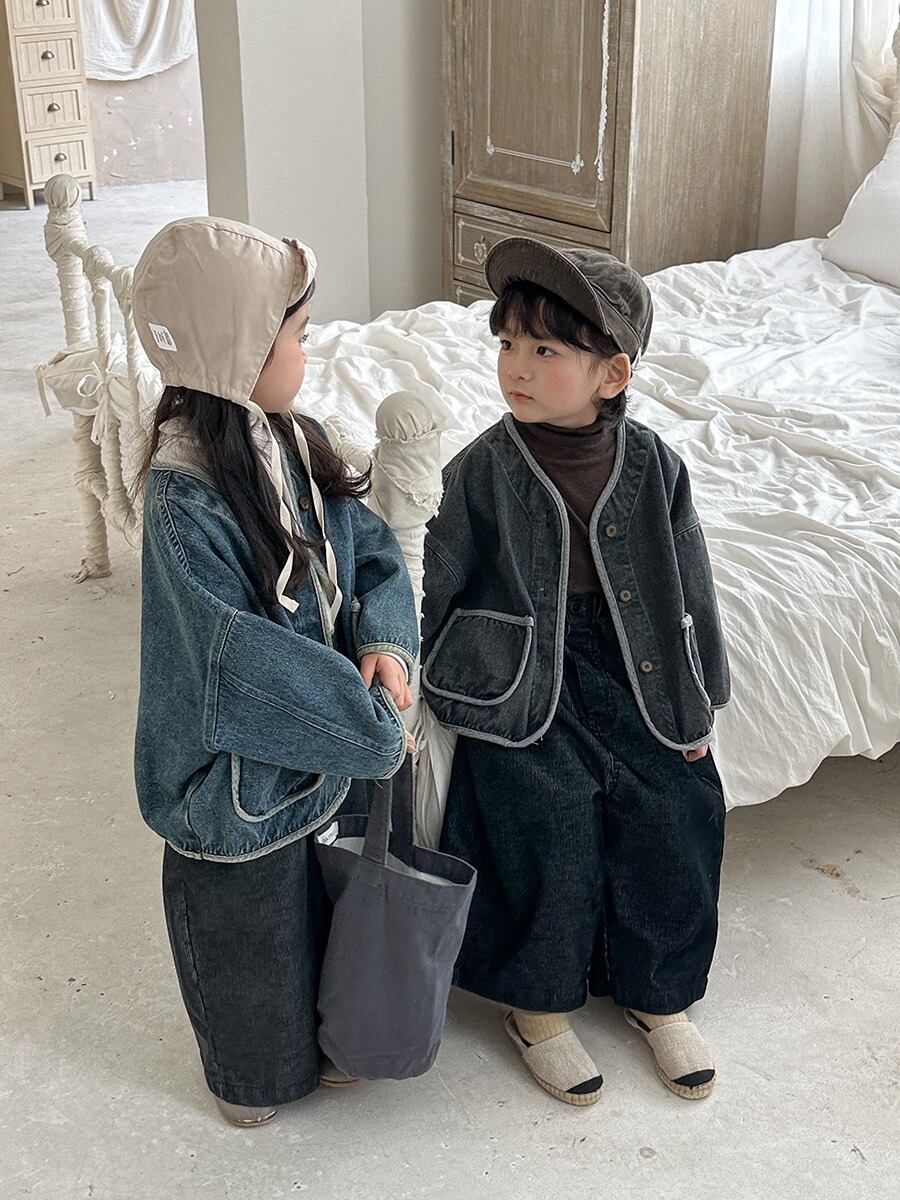 《取寄》 エッジングデニムジャケット (ブルー/ブラック) JIAY 2025秋 韓国子供服 アウター ジャケット カーディガン 上着 ブルゾン (80~140cm)