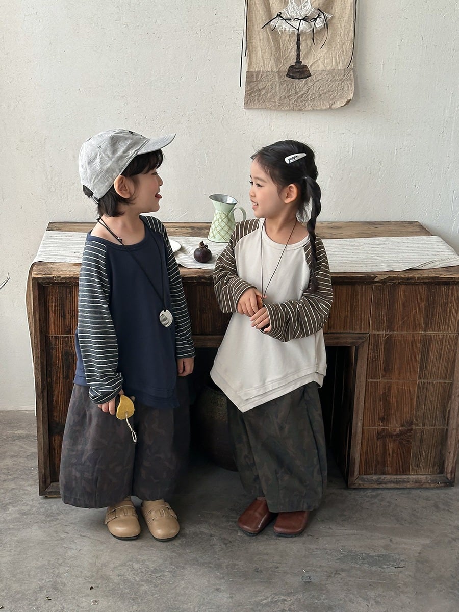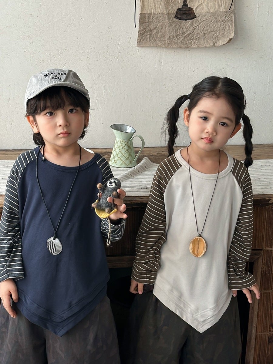 《取寄》 裾変形ラグランロングTシャツ (ネイビー/アイボリー/ブラック) JIAY 2025秋 韓国子供服 トップス カットソー 長袖 ロンT Tシャツ ボーダー 金太郎Tシャツ (80~140cm)