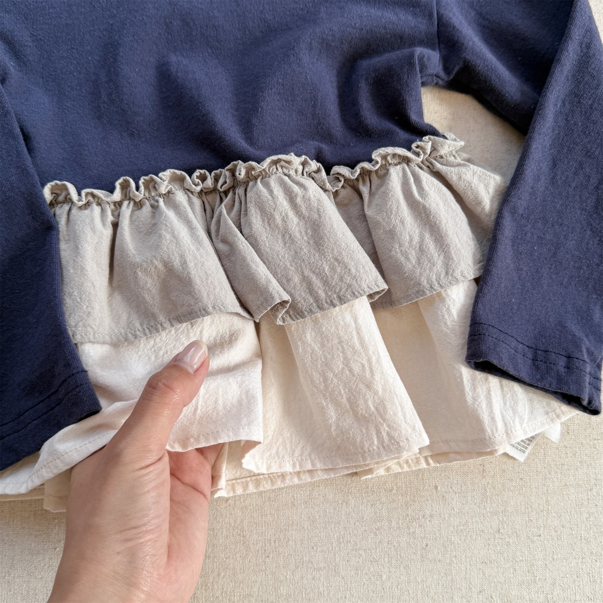 《取寄》 ダブルフリルトップス (アイボリー/ネイビー) ADBB 2025秋 韓国子供服 トップス カットソー ロンT 長袖 フリル レース 女の子 (80~130cm)