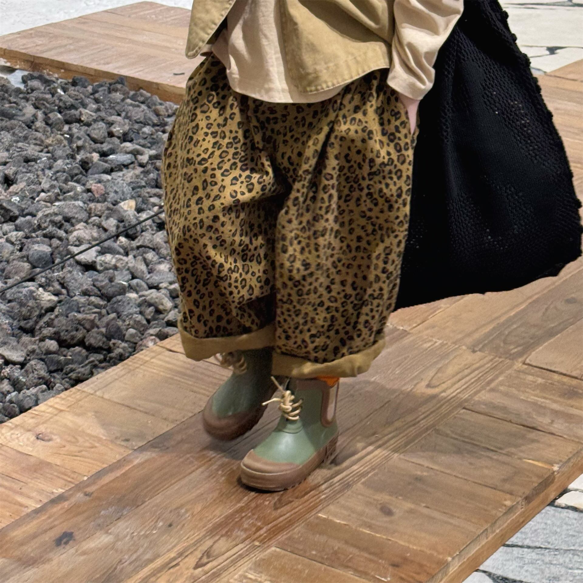 《取寄》 ヒョウ柄ワイドレッグパンツ (ブルー/ベージュ) ADBB 2025秋 韓国子供服 ボトムス ズボン パンツ ワークパンツ アニマル柄 レオパード (80~130cm)
