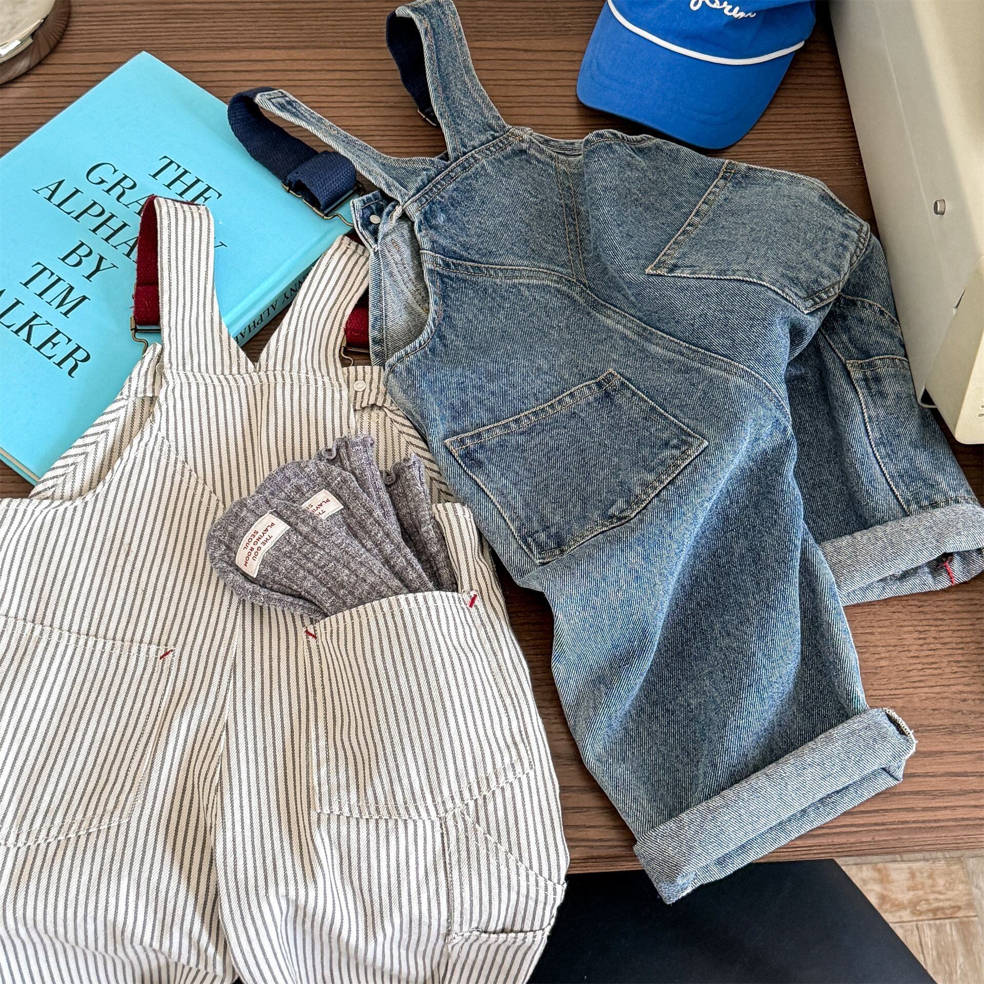 《取寄》 刺繍デニムオーバーオール (ブルー/ストライプ) ADBB 2025秋 韓国子供服 サロペット オーバーオール パンツ ズボン (80~130cm)