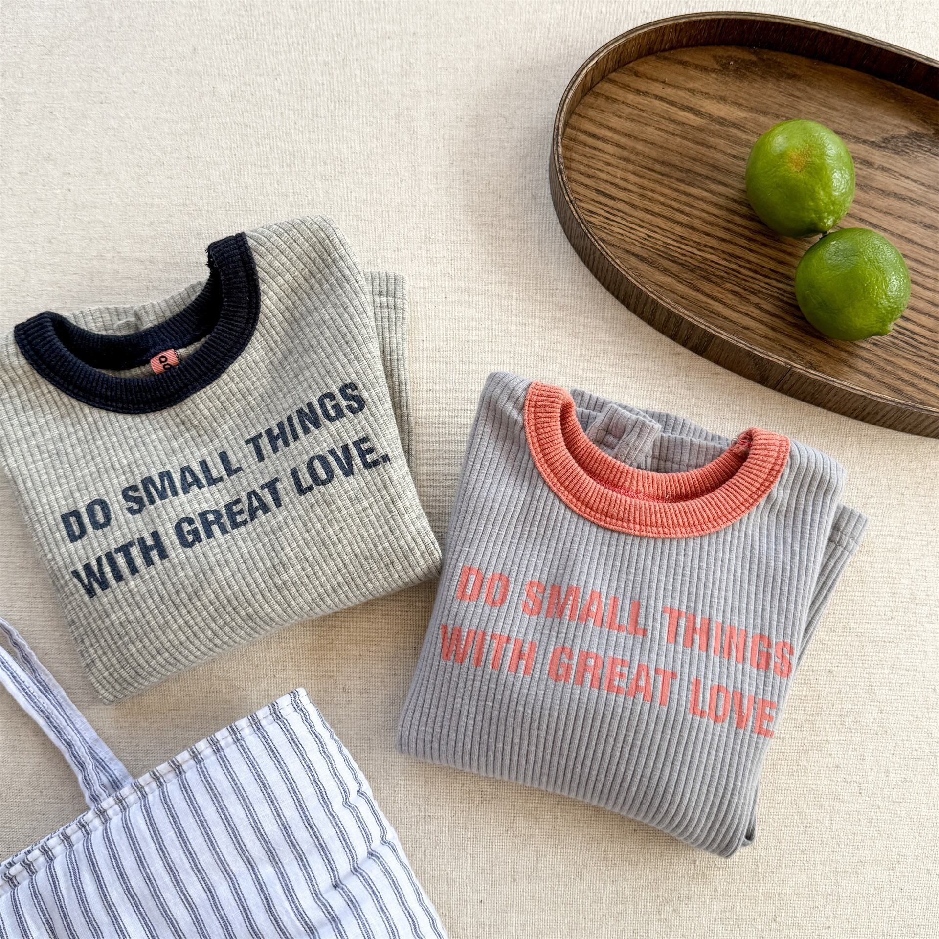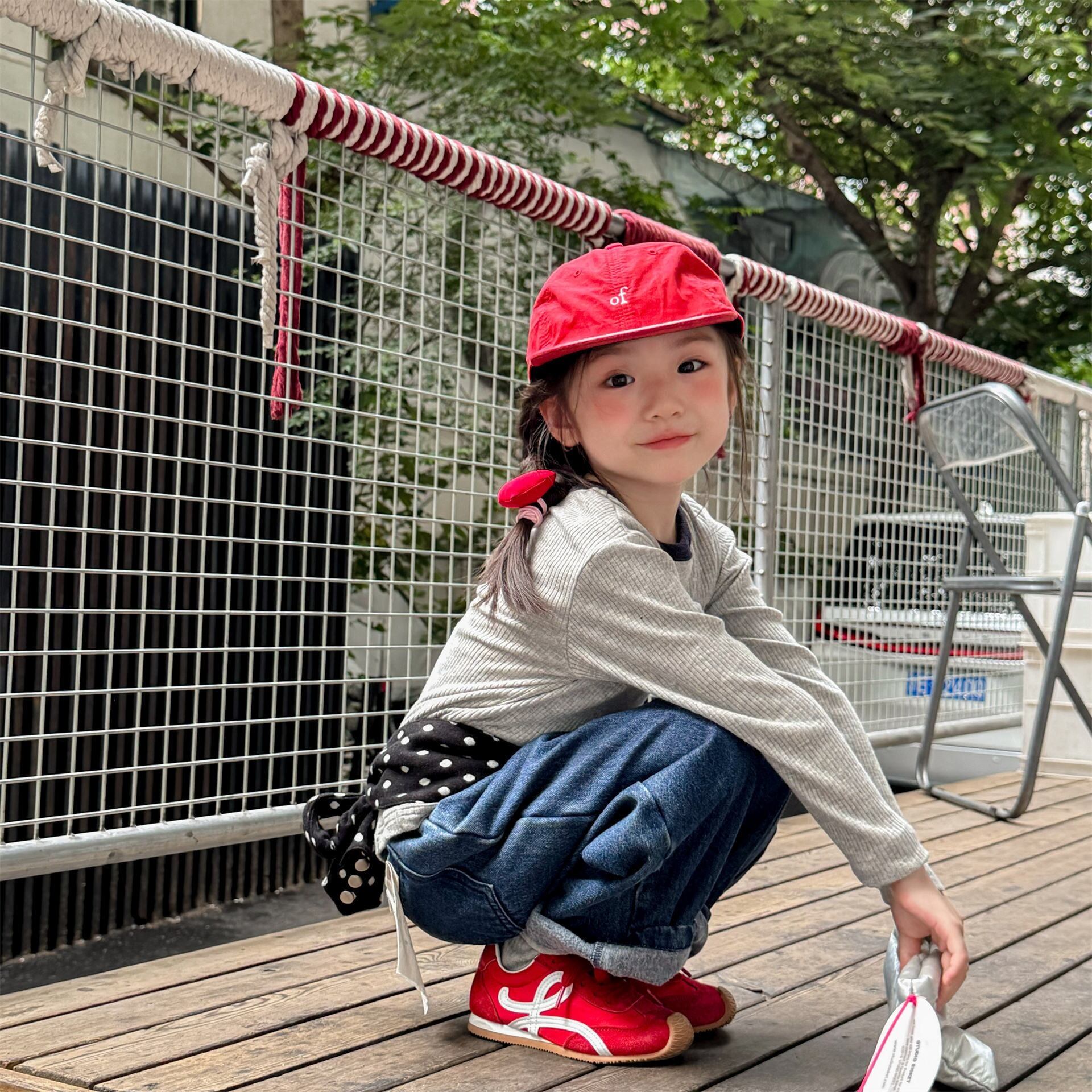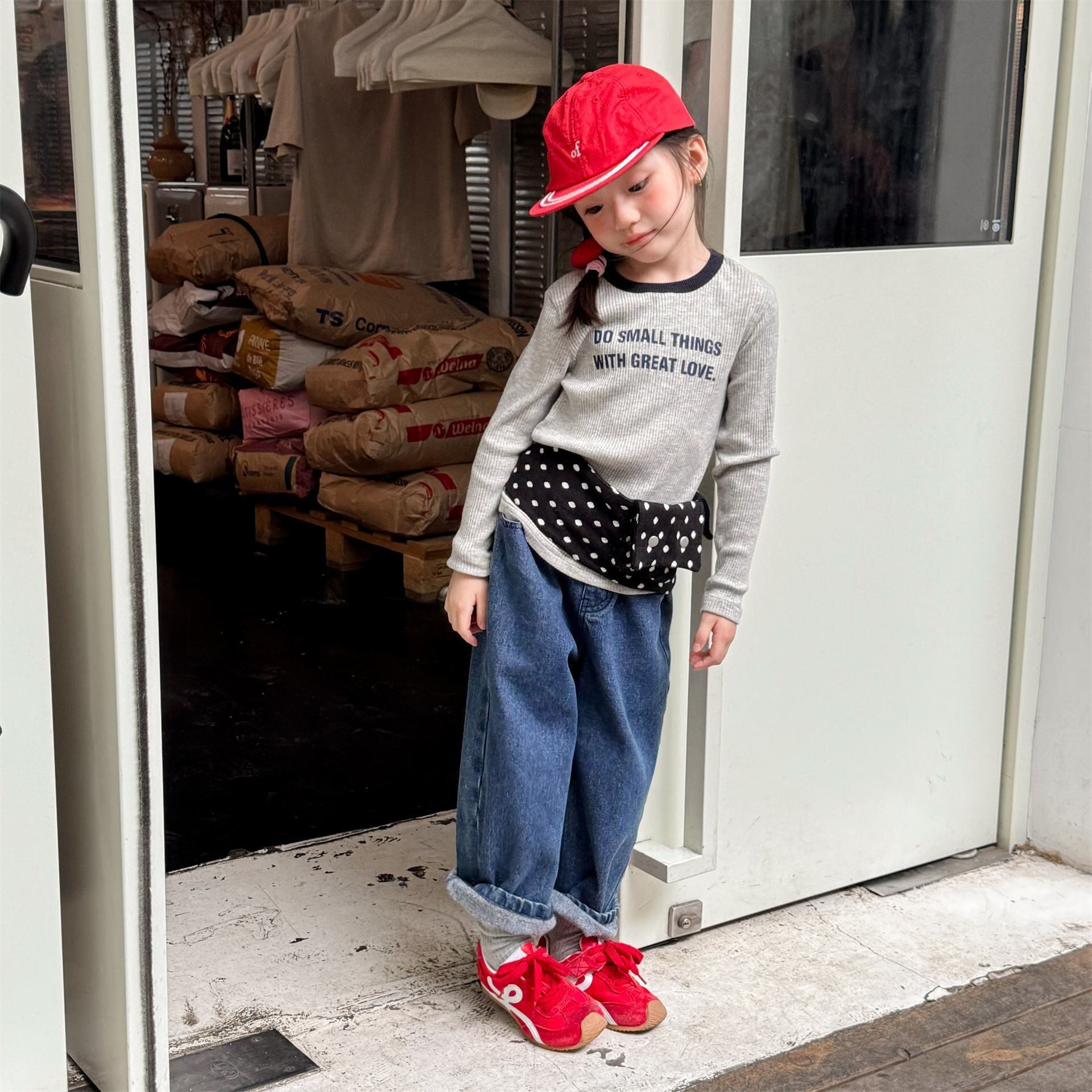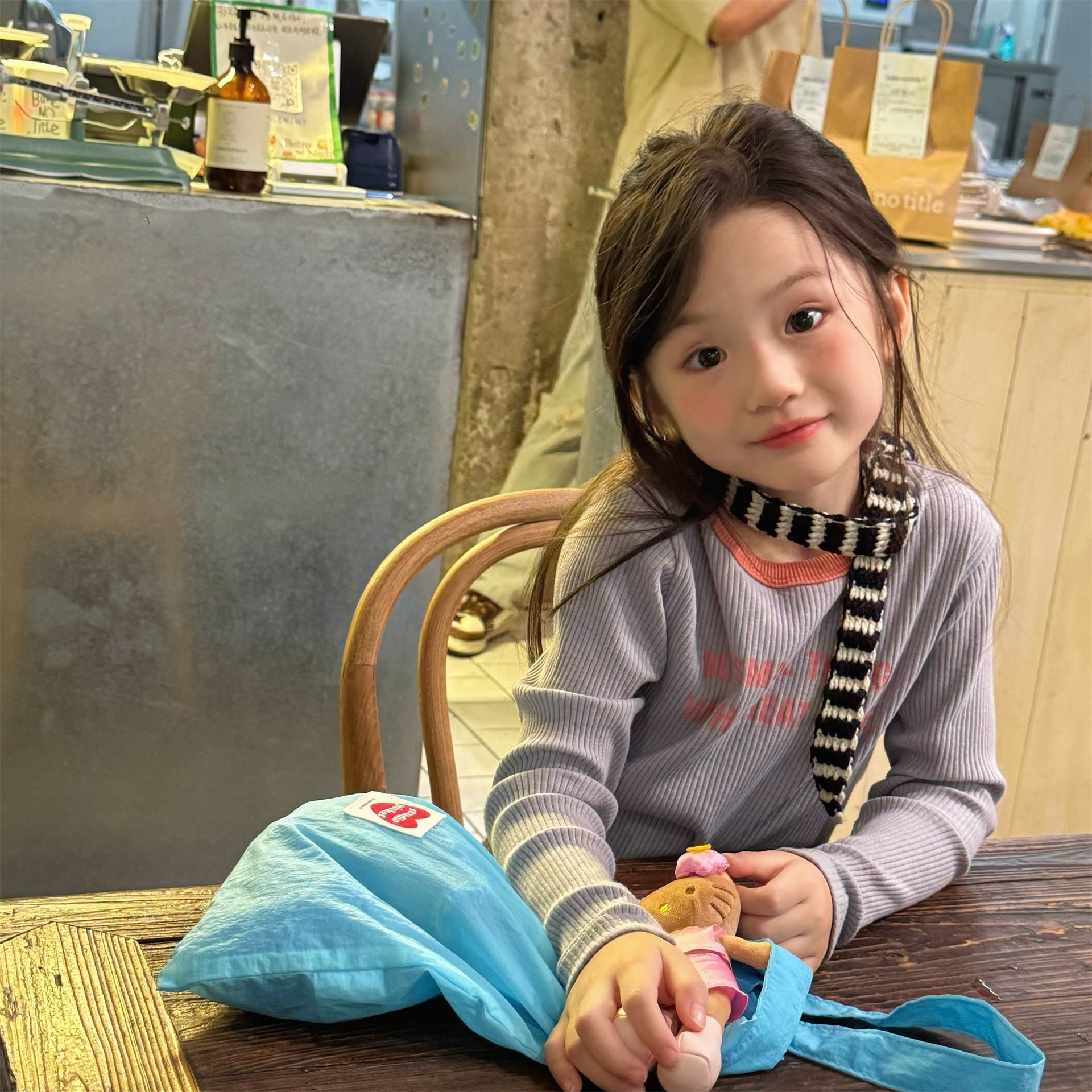 《取寄》 リンガーリブトップス (グレー/アイスブルー) ADBB 2025秋 韓国子供服 トップス カットソー ロンT 長袖 Tシャツ スポカジ (80~130cm)
