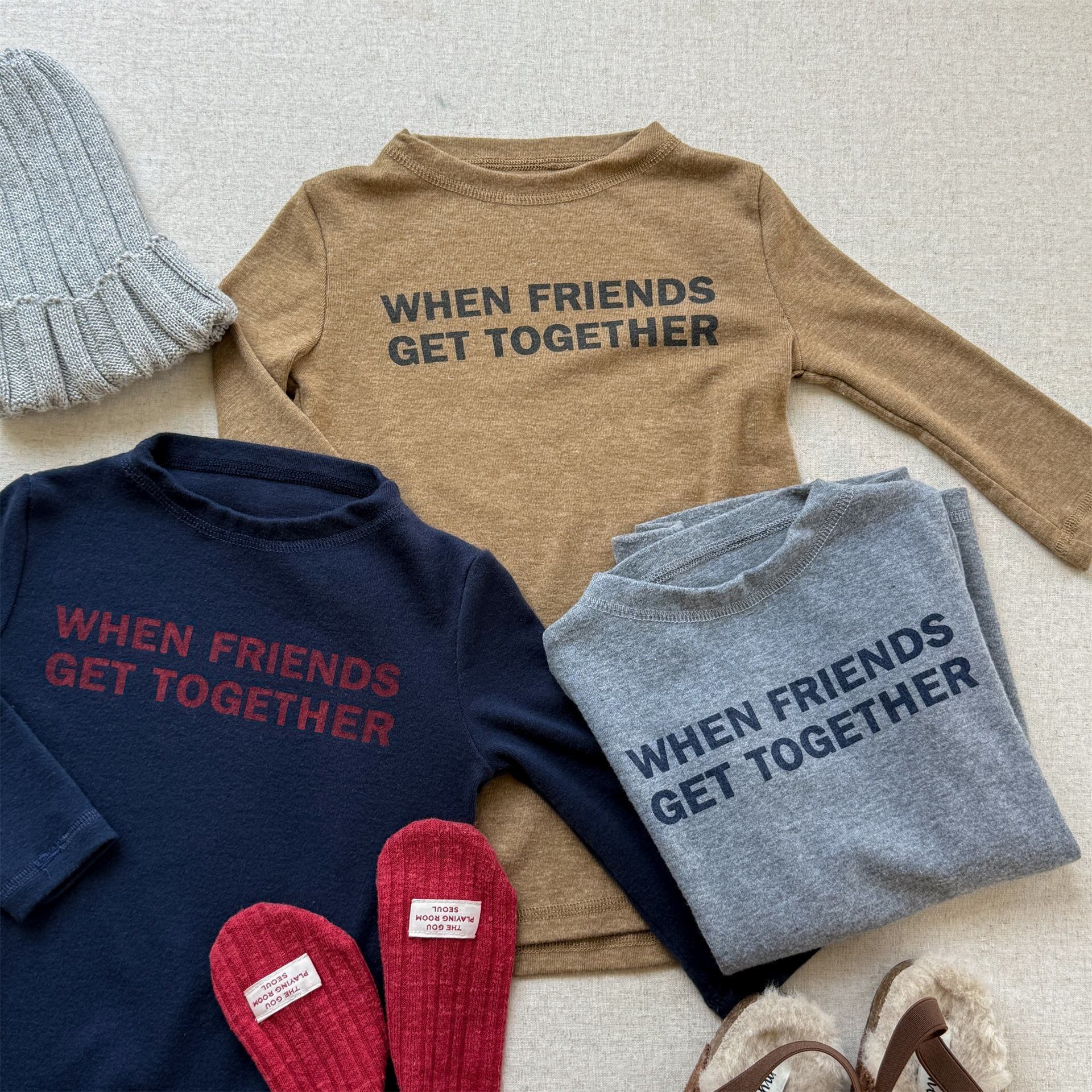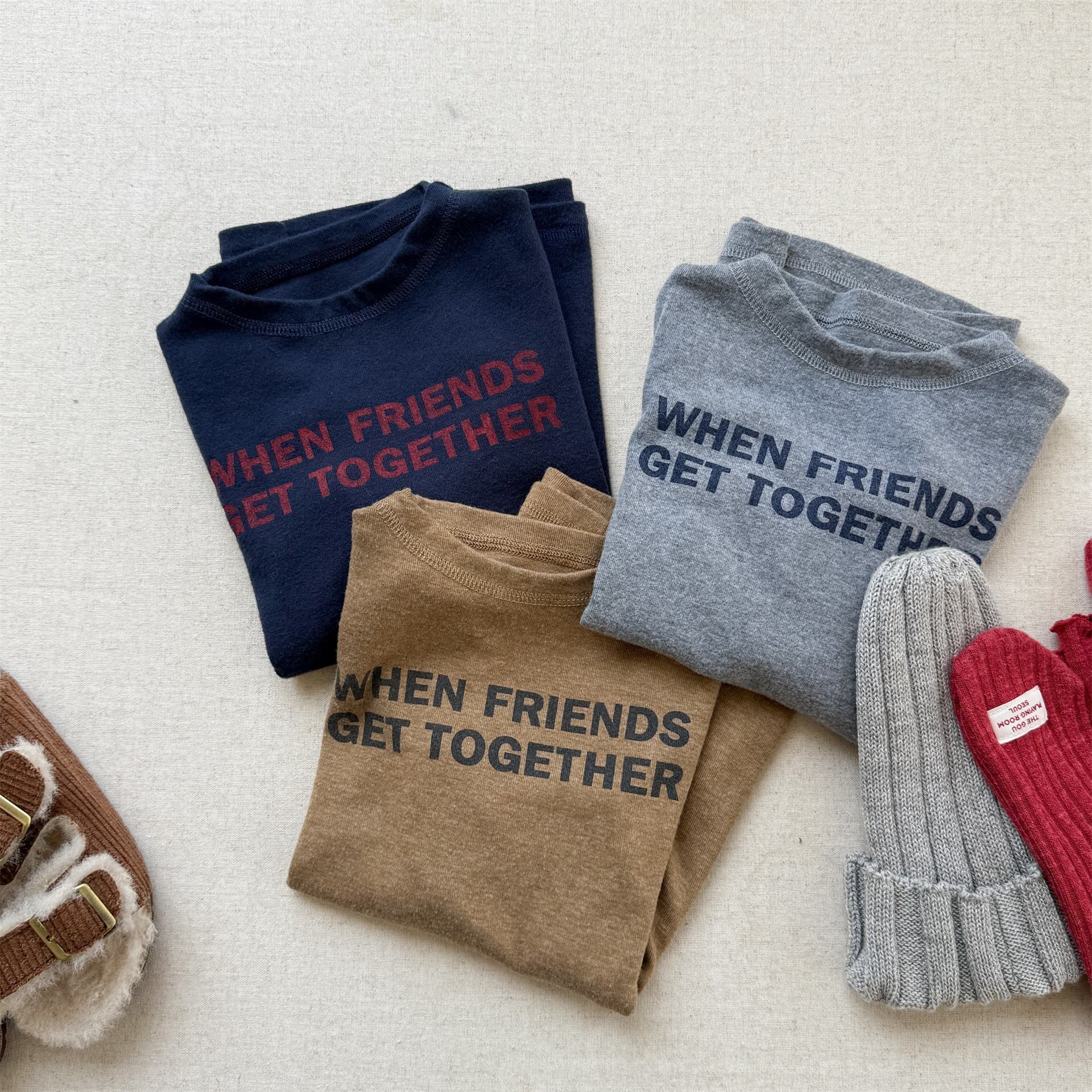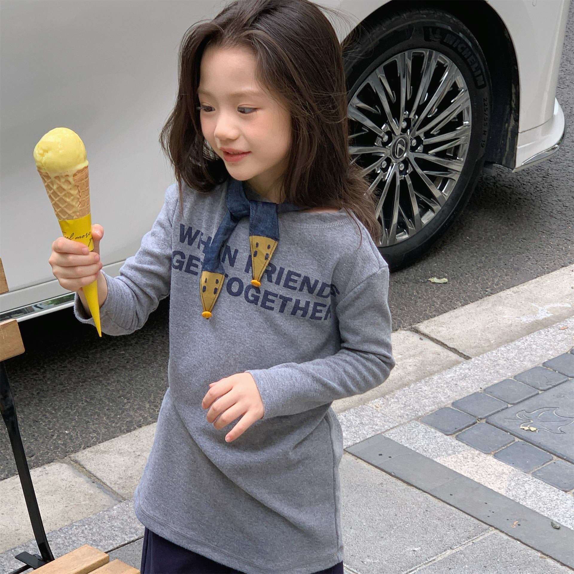 《取寄》 レタリングワンピース (ベージュ/ネイビー/グレー) ADBB 2025秋 韓国子供服 トップス カットソー ロンT 長袖 ワンピ ロングTシャツ (80~130cm)