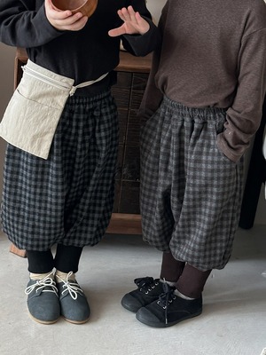 《取寄》 チェック柄ジョッキーパンツ (モカ/ブラック) JIAY 2025秋 韓国子供服 ボトムス ズボン 裾絞りパンツ サルエル ゆったり イージーパンツ (80~140cm)