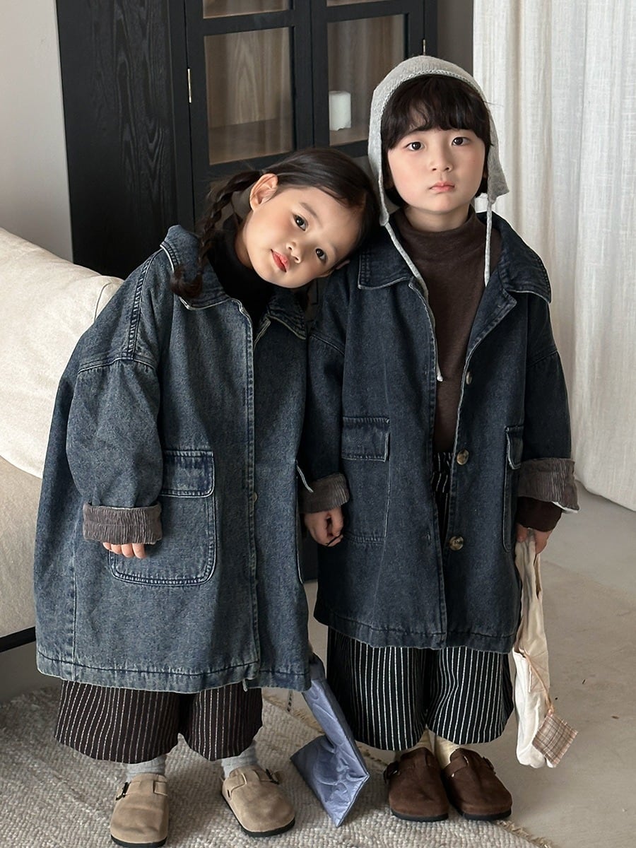 《取寄》 ミディアムデニムコート (ブルー/チャコール) JIAY 2025秋 韓国子供服 アウター ロングジャケット 上着 ラペルコート (80~140cm)