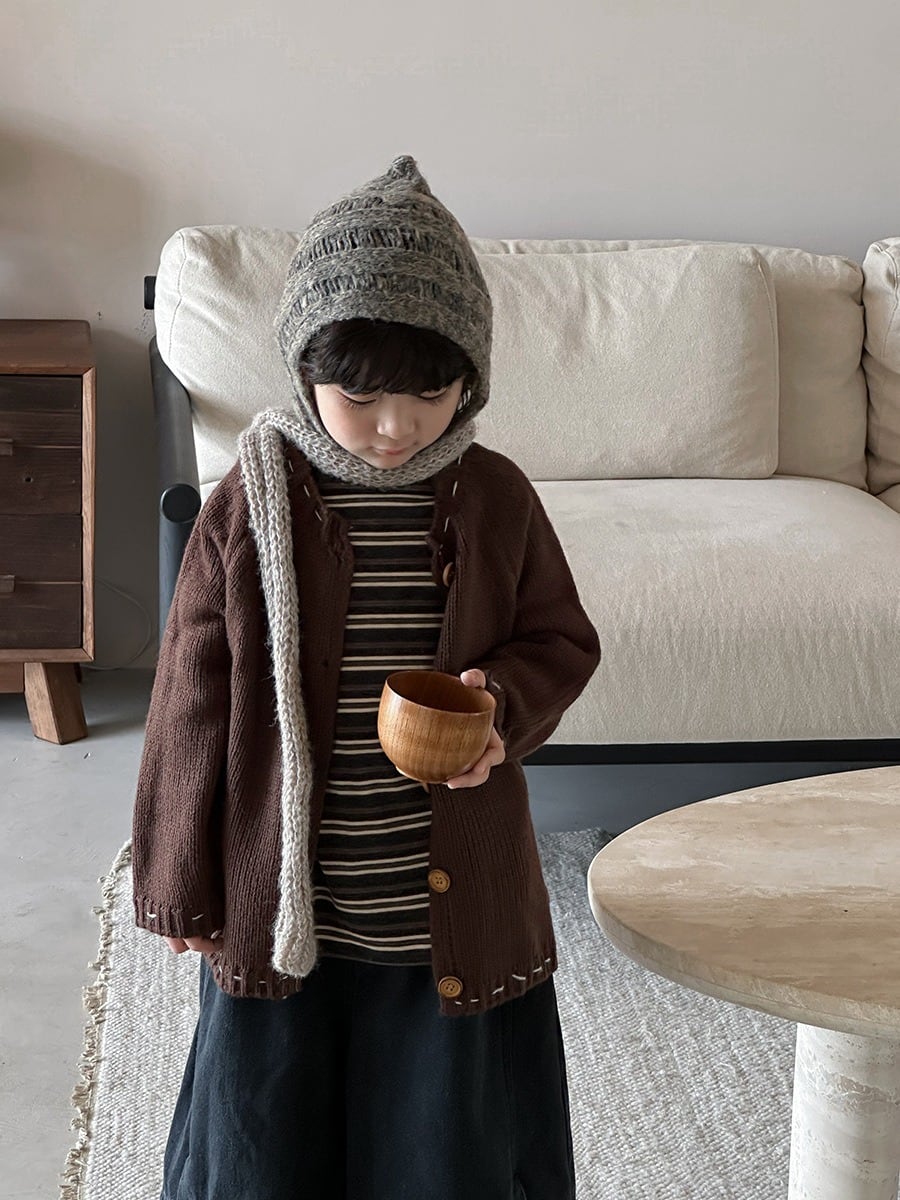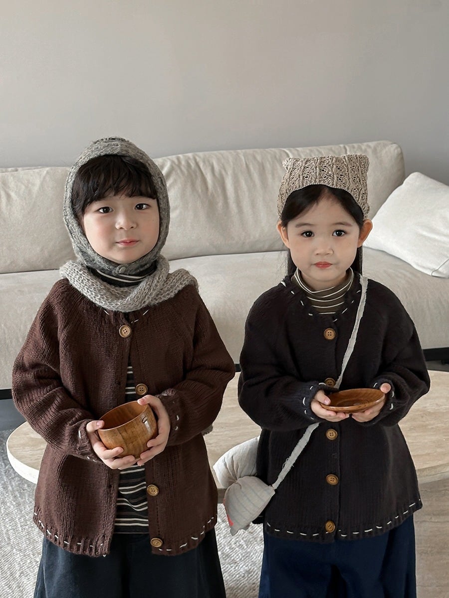 《取寄》 ステッチニットカーディガン (ブラウン/チャコール) JIAY 2025秋 韓国子供服 アウター カーデ 上着 羽織り ニット ボタン (80~140cm)