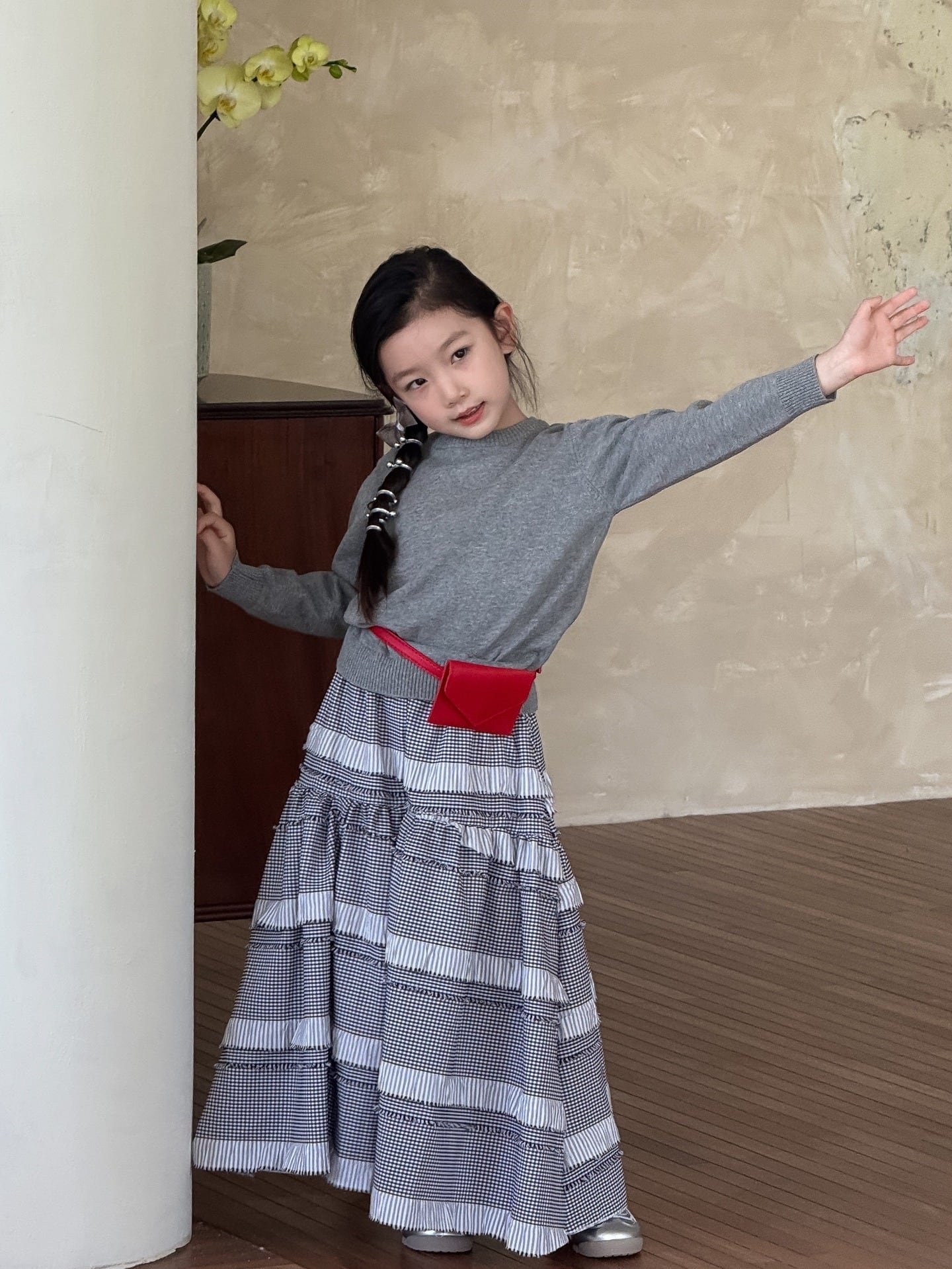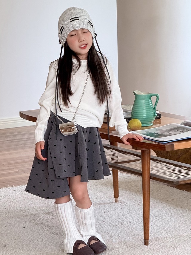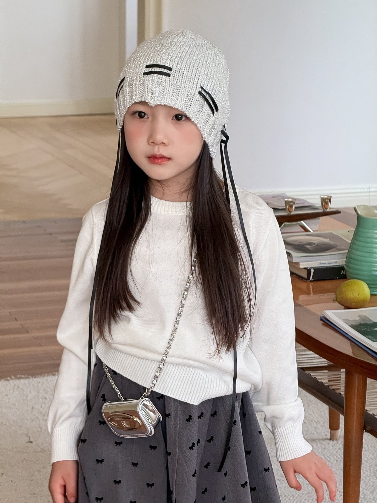 《取寄》 Uネックソリッドセーター (ホワイト/グレー/ネイビー) XUAN 2025秋 韓国子供服 トップス カットソー プルオーバー セーター ニット (90~150cm)
