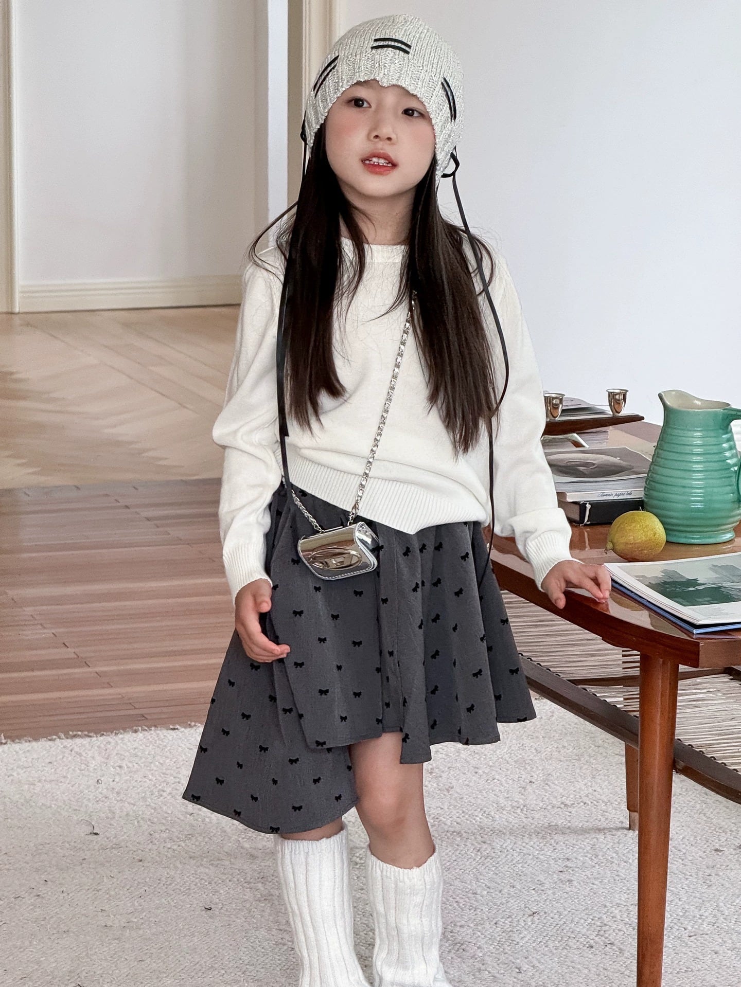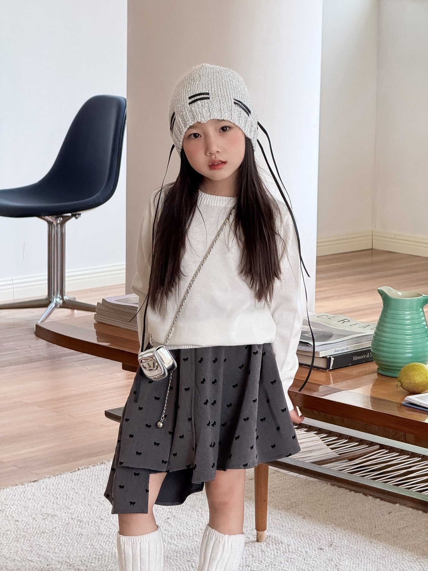 《取寄》 アシンメトリーリボン柄スカート (グレー) XUAN 2025秋 韓国子供服 ボトムス スカート ミニスカート 女の子 (90~150cm)