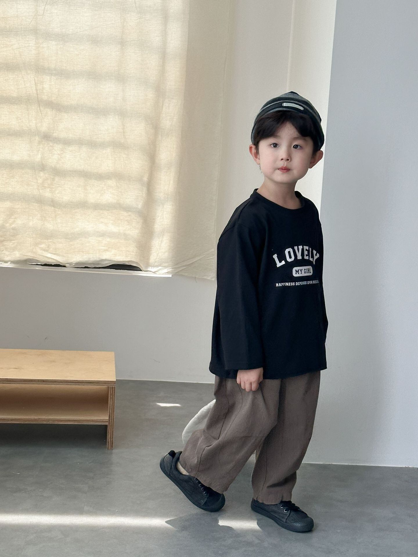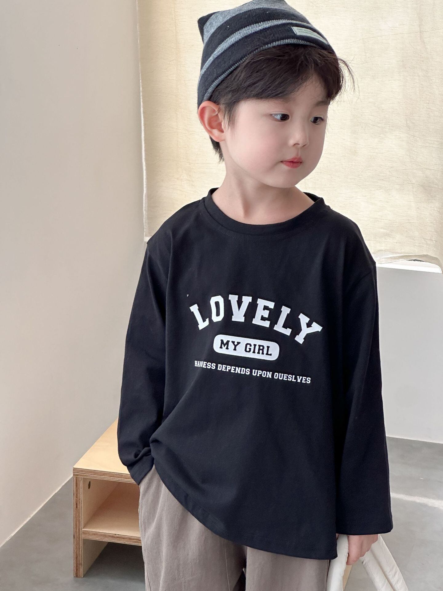 《取寄》 LOVELYプリントロングTシャツ (ブラック / グレー) QQMM 2025秋 韓国子供服 トップス カットソー ロンT 長袖 Tシャツ (80~150cm)