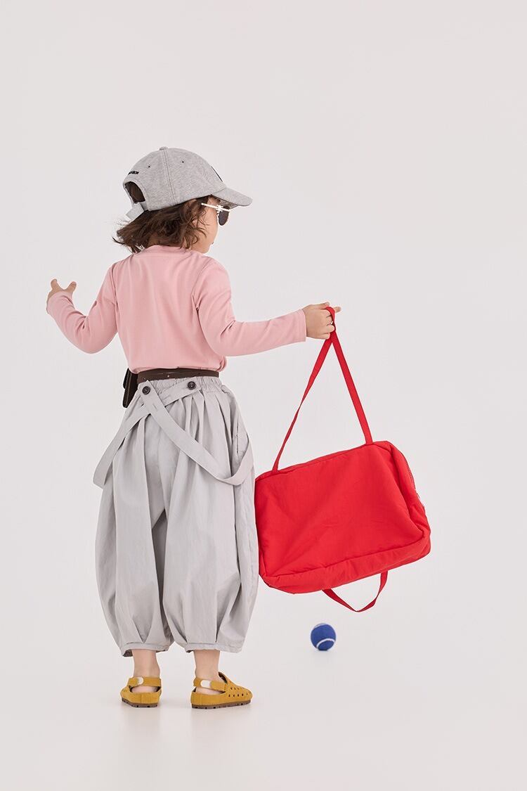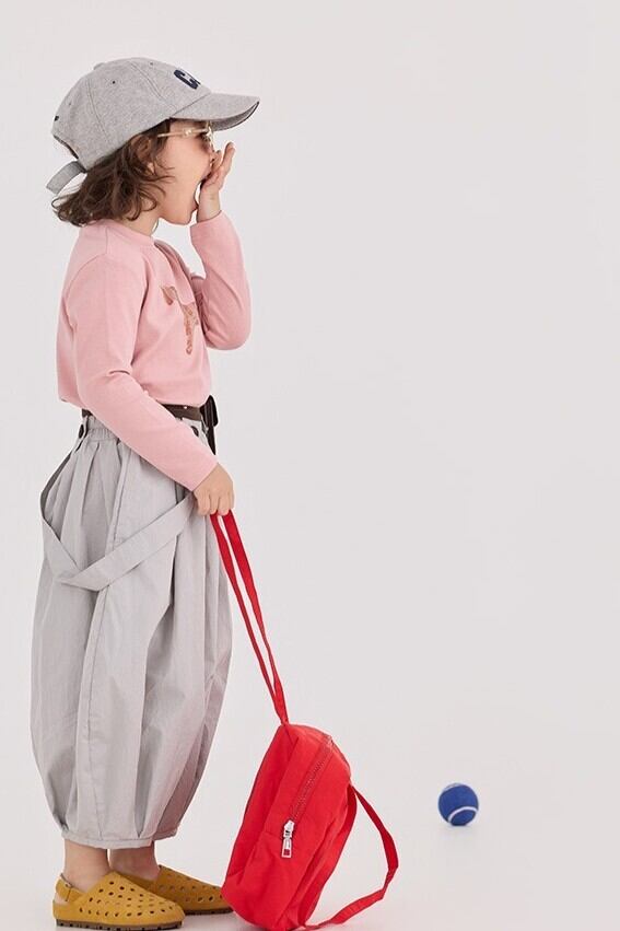 9分丈サスペンダーパンツ(ライトグレー/ネイビー)BOBI 2026春|90-150cm|クロップドパンツ|コクーンパンツ|ワイドパンツ [取寄]
