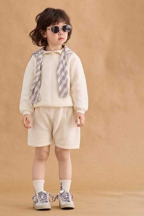 ポロニットセットアップ(アイボリー)BOBI 2026春|90-150cm|襟付き|セーター|春ニット [取寄]