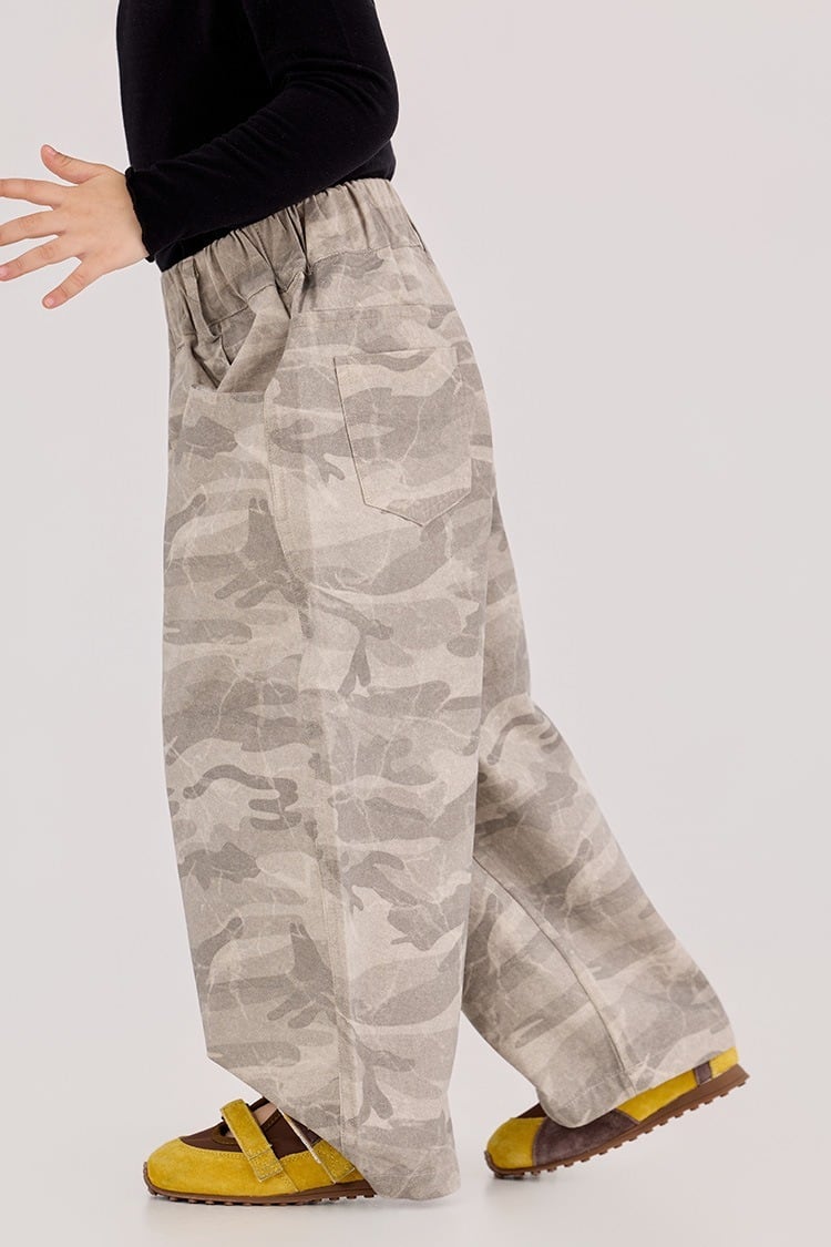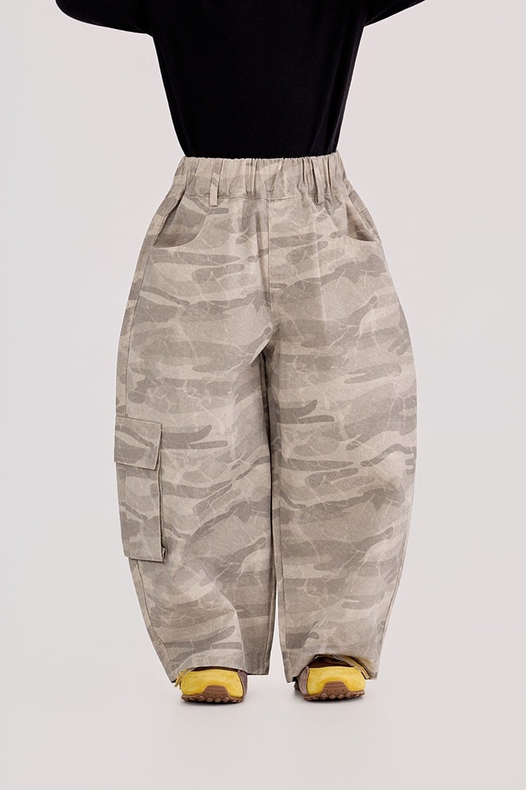 迷彩コクーンカーゴパンツ(カモフラ)BOBI 2026春|90-150cm|バレルレッグパンツ|ミリタリー|ワイドパンツ [取寄]