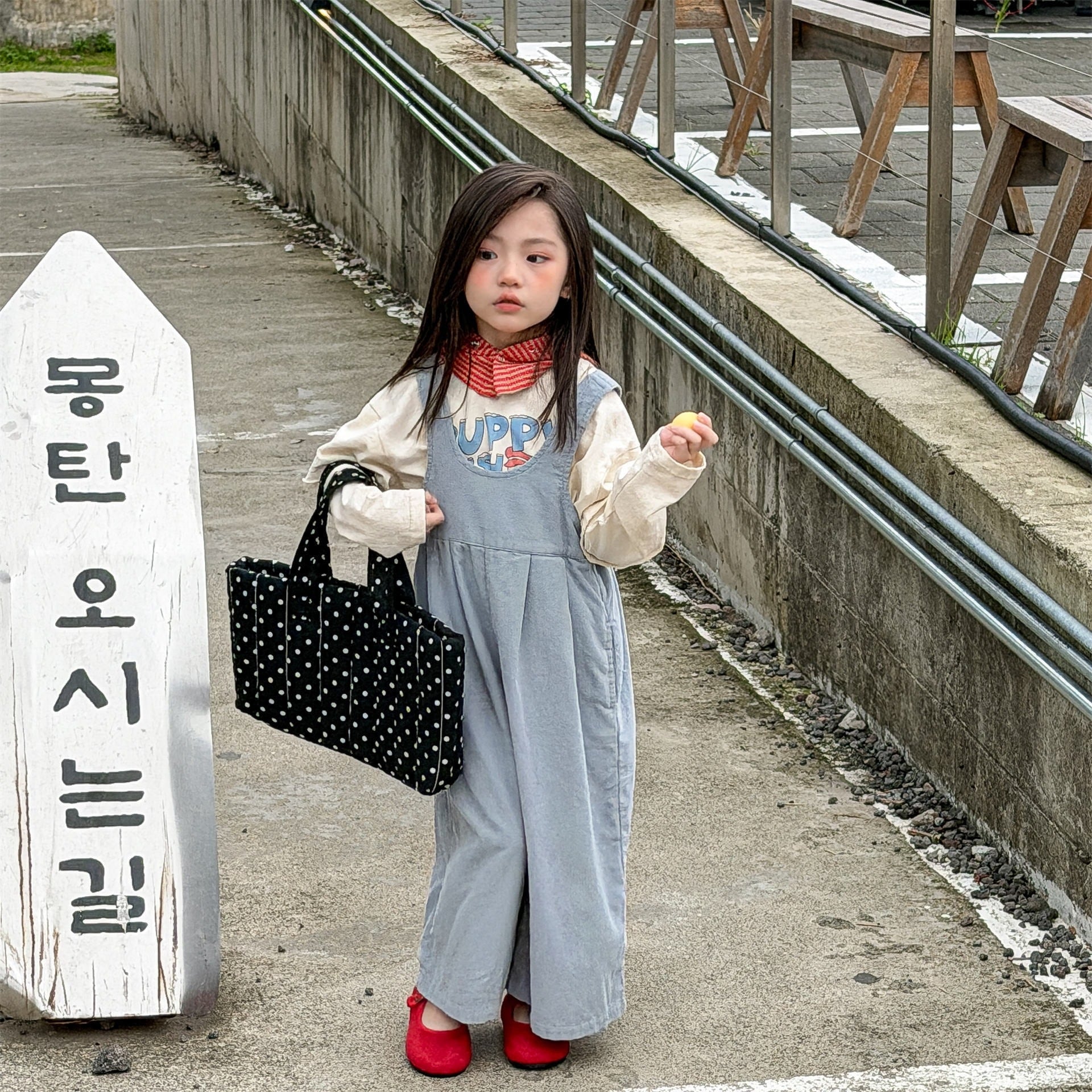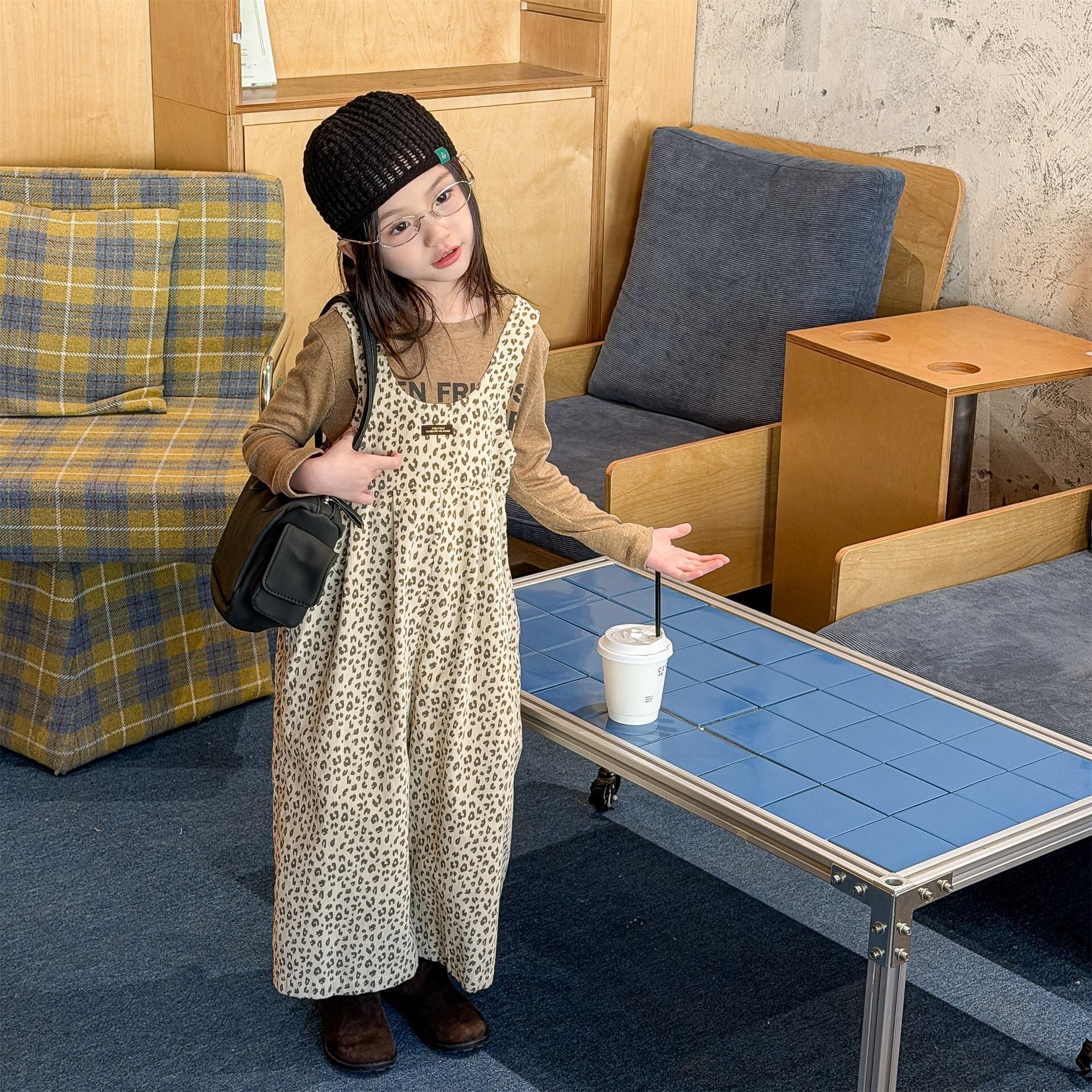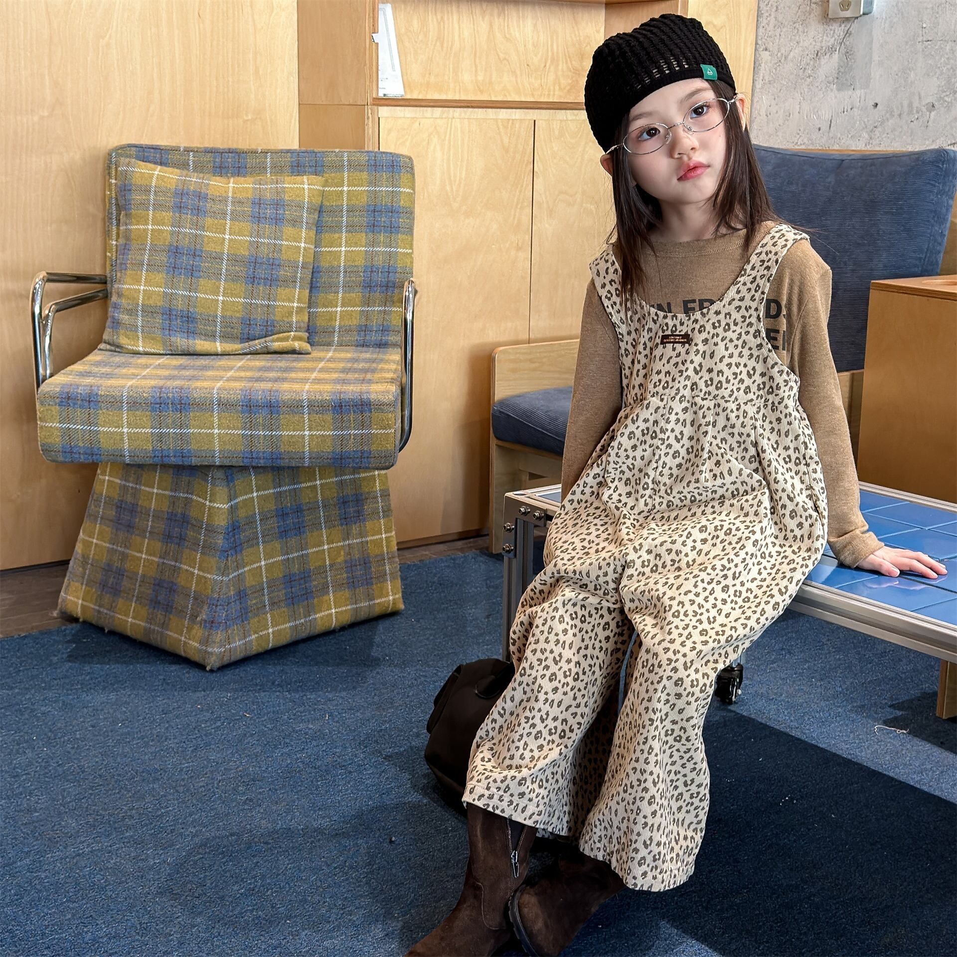 コーデュロイワイドサロペット(スカイ/ヒョウ柄)ADBB 2026春|80-130cm|オールインワン|オーバーオール|ワイドパンツ [取寄]