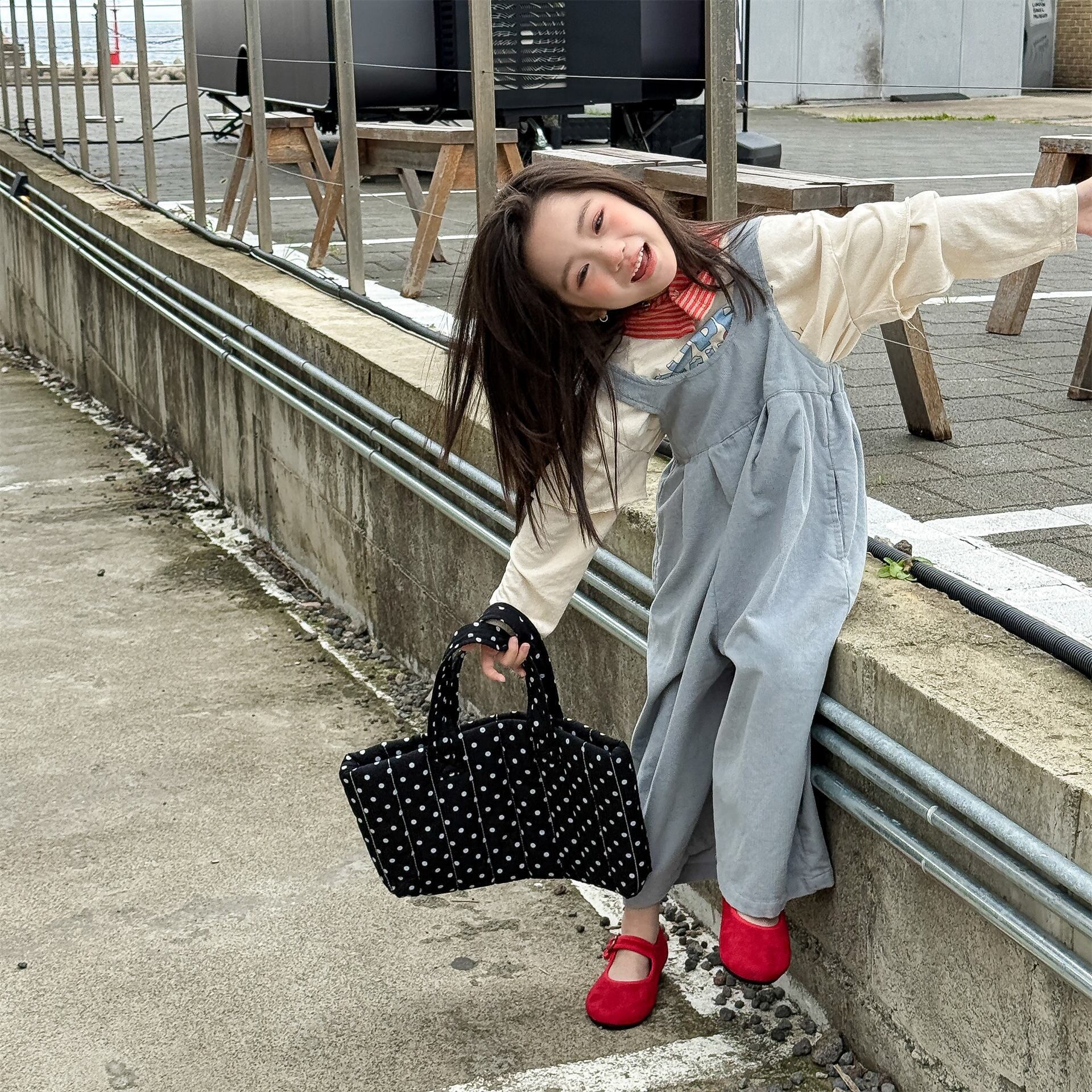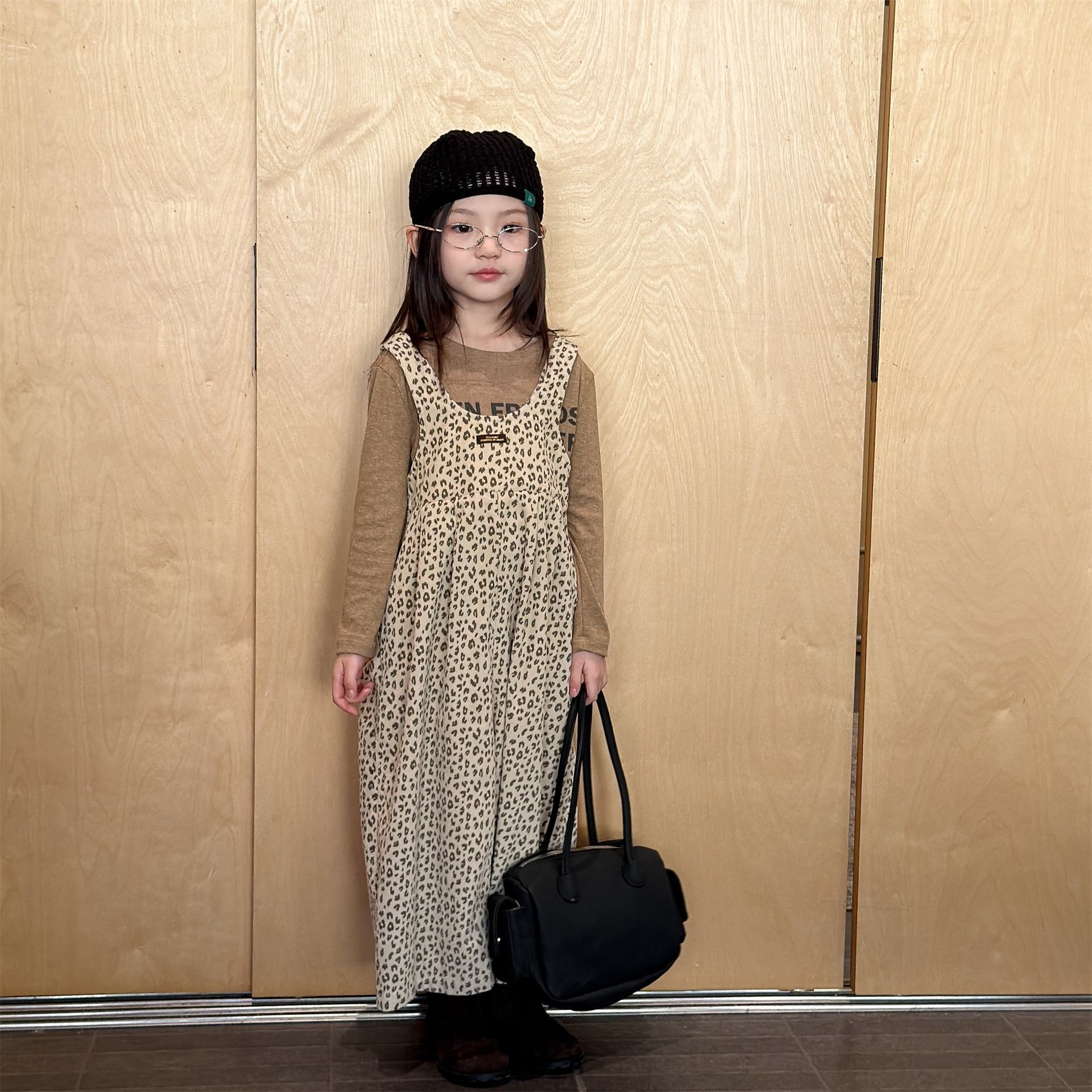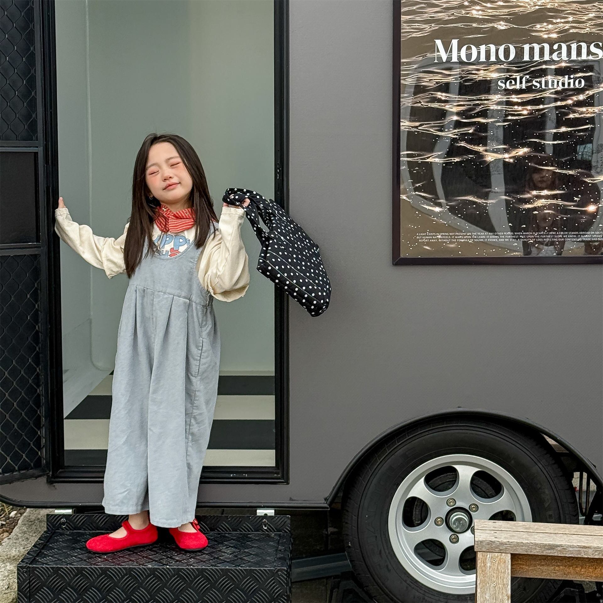 コーデュロイワイドサロペット(スカイ/ヒョウ柄)ADBB 2026春|80-130cm|オールインワン|オーバーオール|ワイドパンツ [取寄]