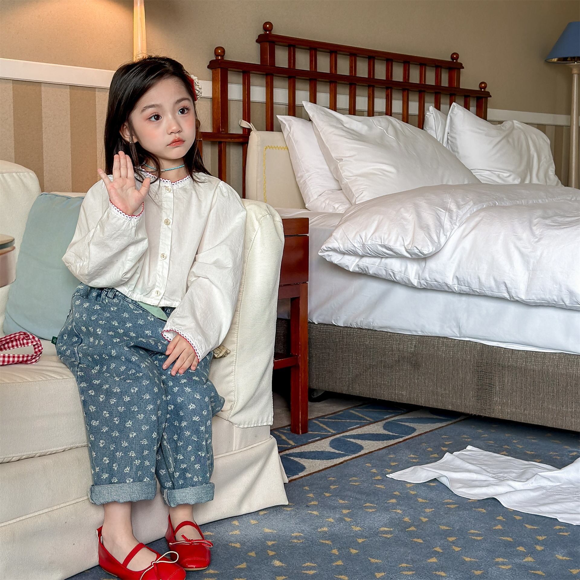 ふち編みショート丈ブラウス(ホワイト/ベージュ)ADBB 2026春|80-130cm|トップス|シャツ|ぽわん袖 [取寄]