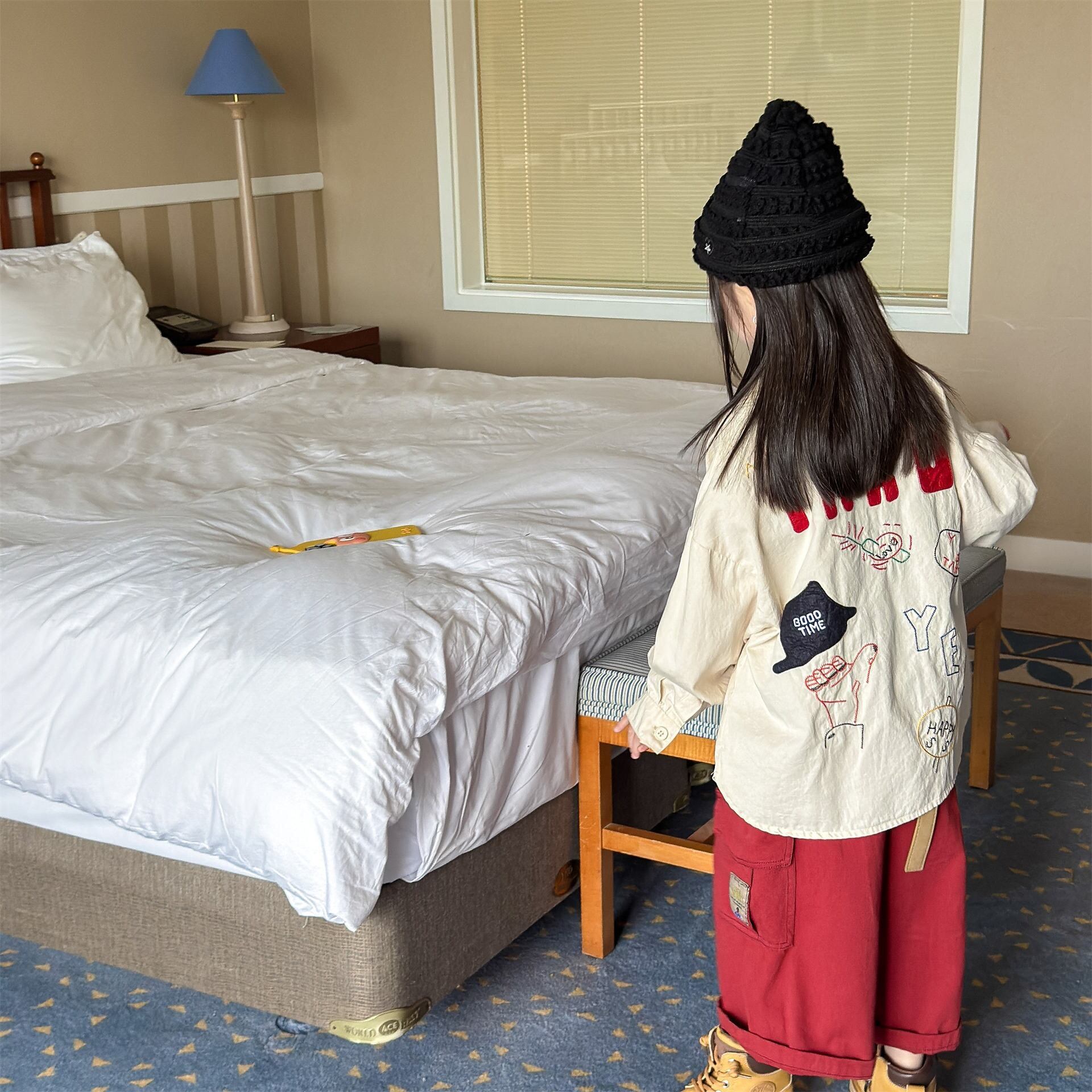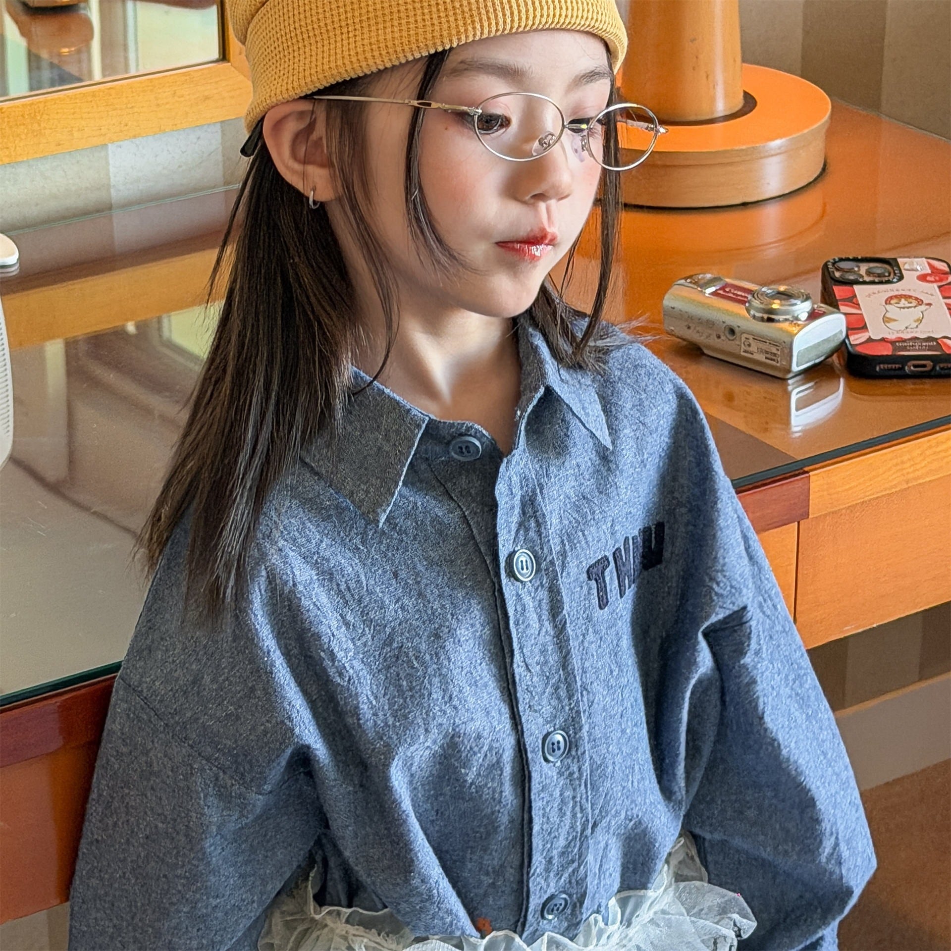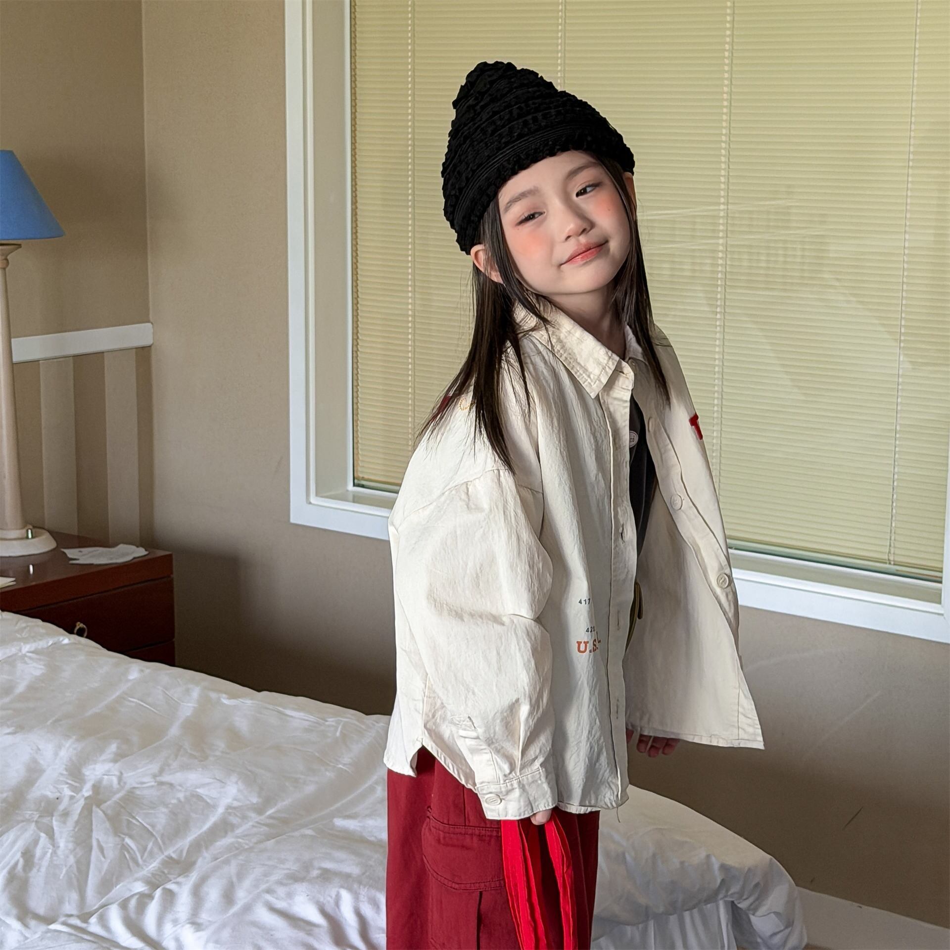 刺繍ワークシャツ(アイボリー/ブルー)ADBB 2026春|80-130cm|トップス|シャツ|ステッチ [取寄]