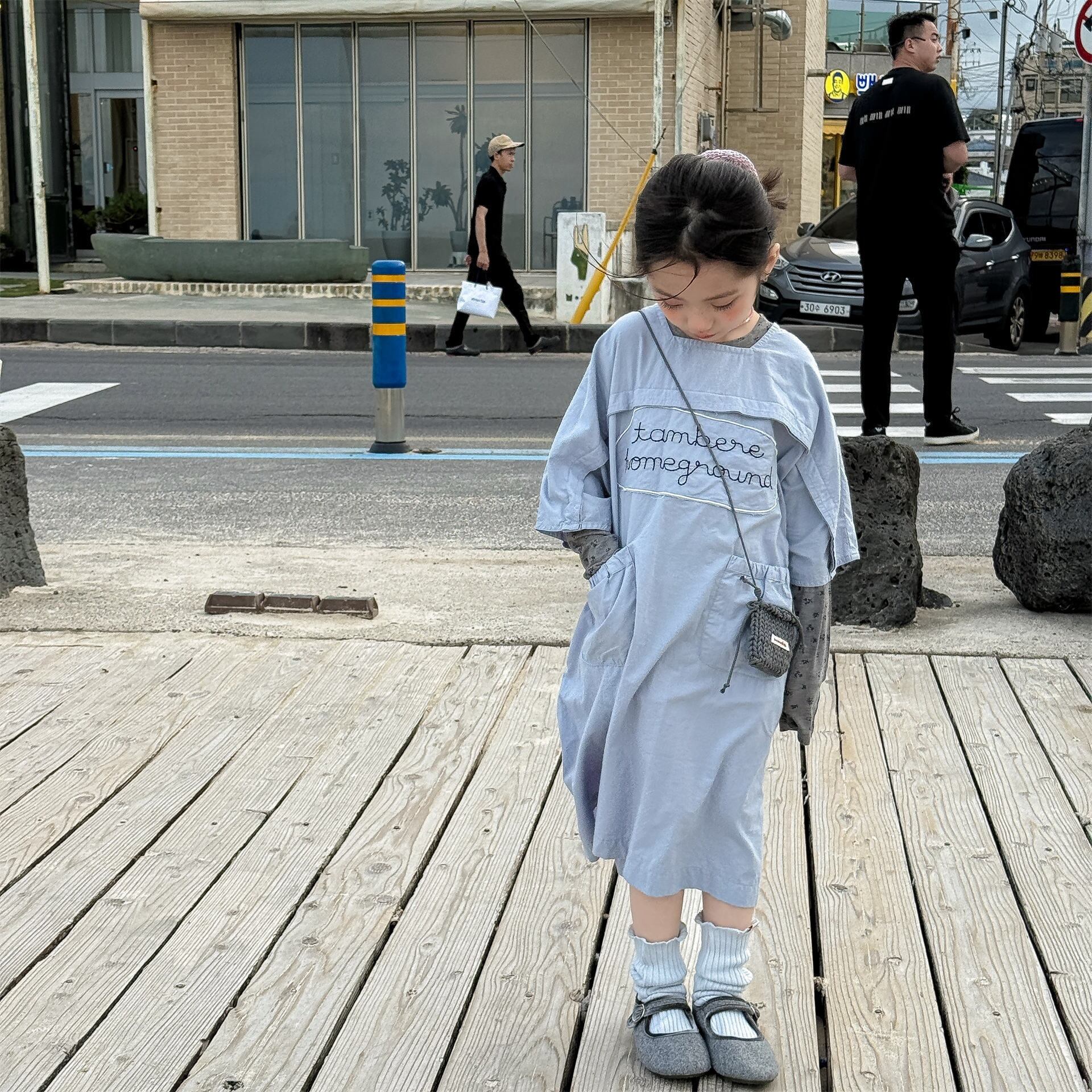 エンブロイダリーポケットワンピース(ベビーブルー/アイボリー)ADBB 2026春|80-130cm|ワンピ|スカート|刺繍 [取寄]