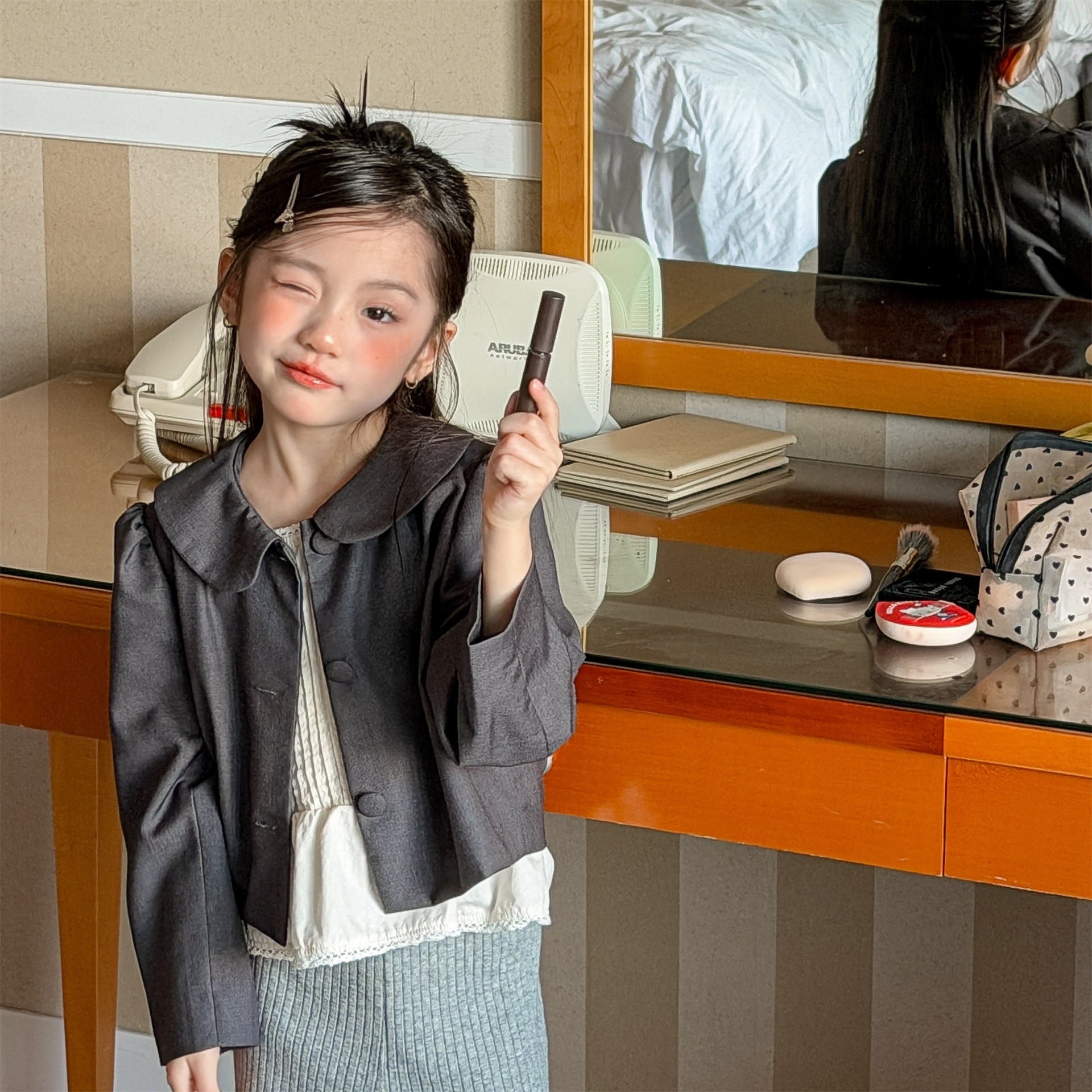 アウター/ジャケット/上着/丸襟/レトロ
