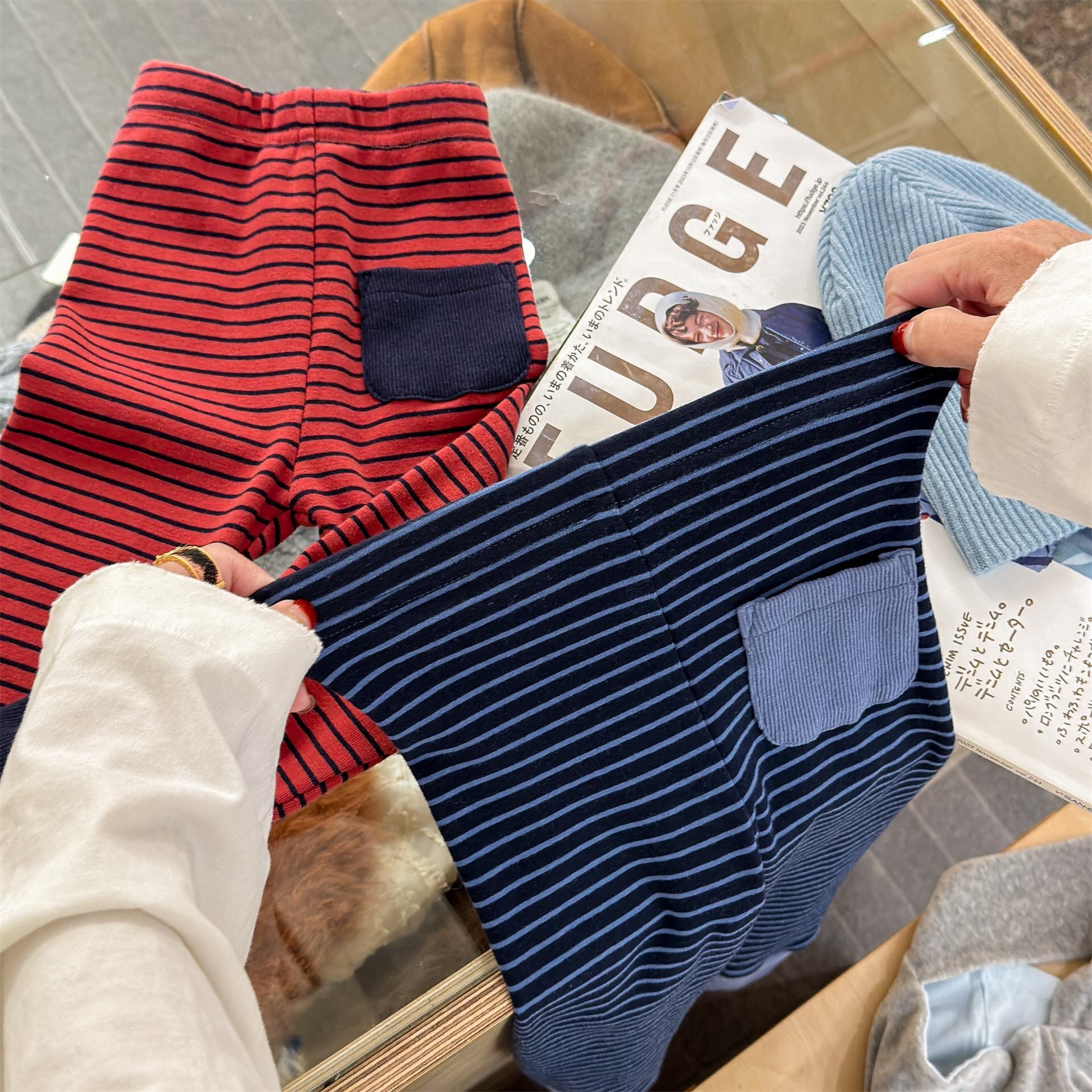 ボーダーリブレギンス(レッド/ネイビー)ADBB 2026春|80-130cm|レギンス|スパッツ|バイカラー [取寄]