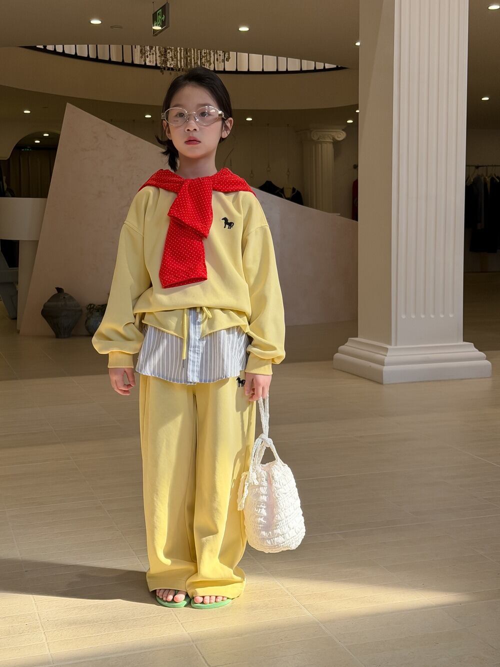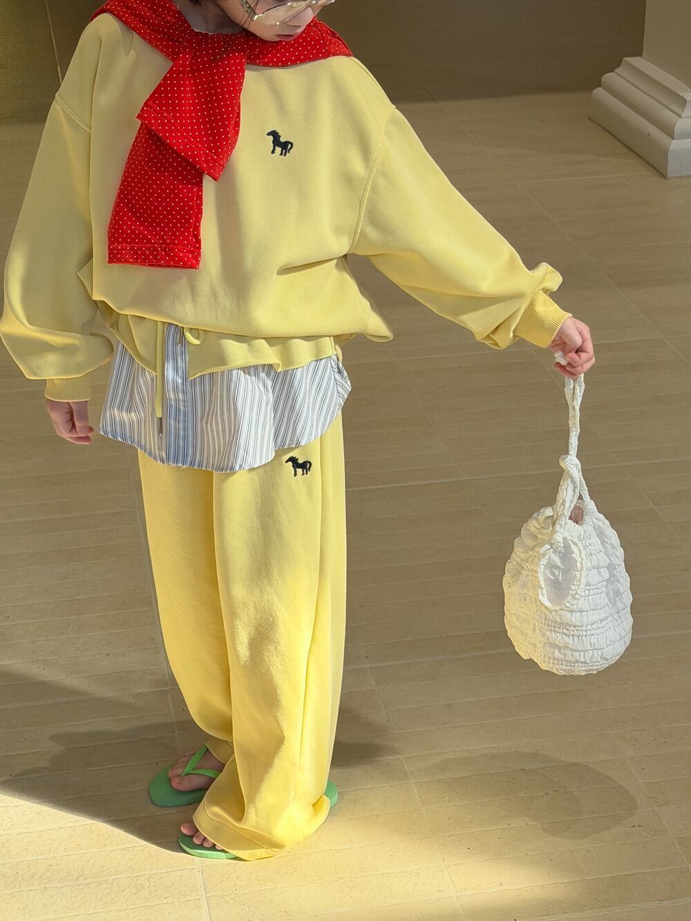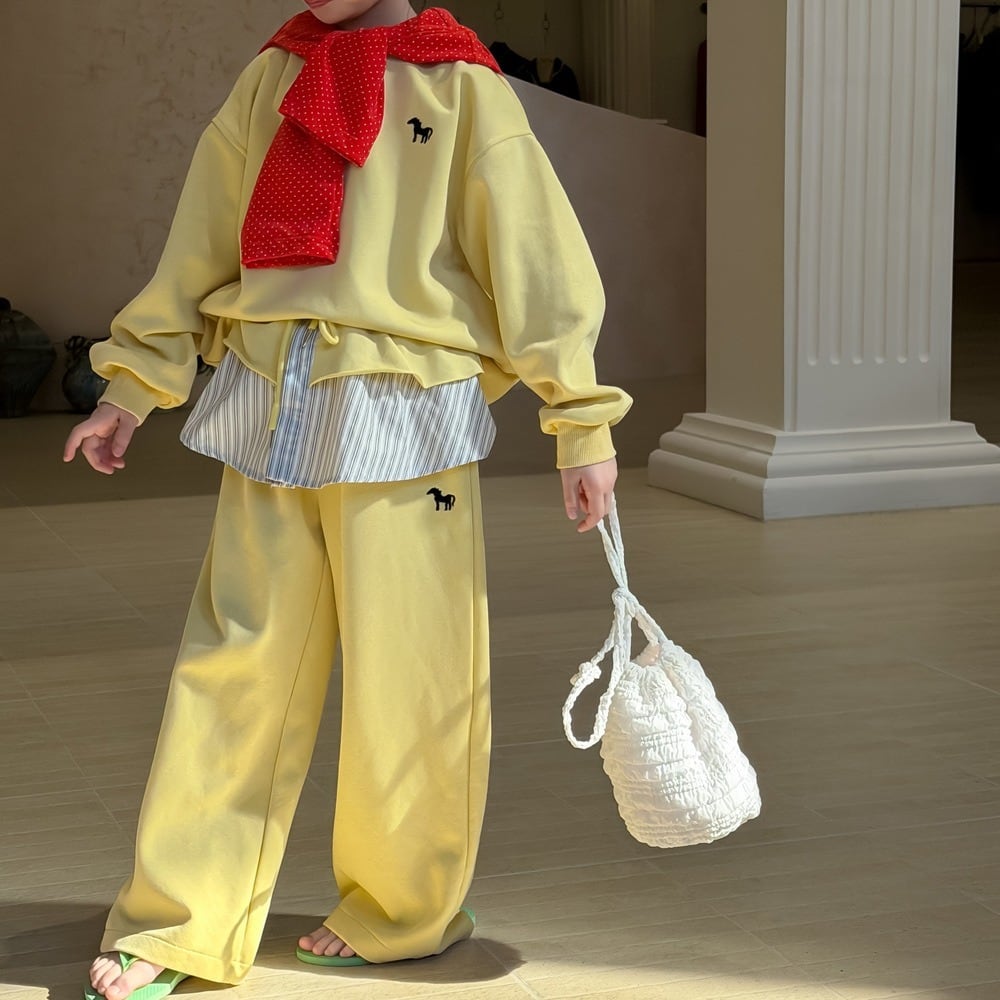 ポニースウェットセットアップ(イエロー)KMAI 2026春|100-160cm|上下セット|フェイクツーピース|重ね着風 [取寄]