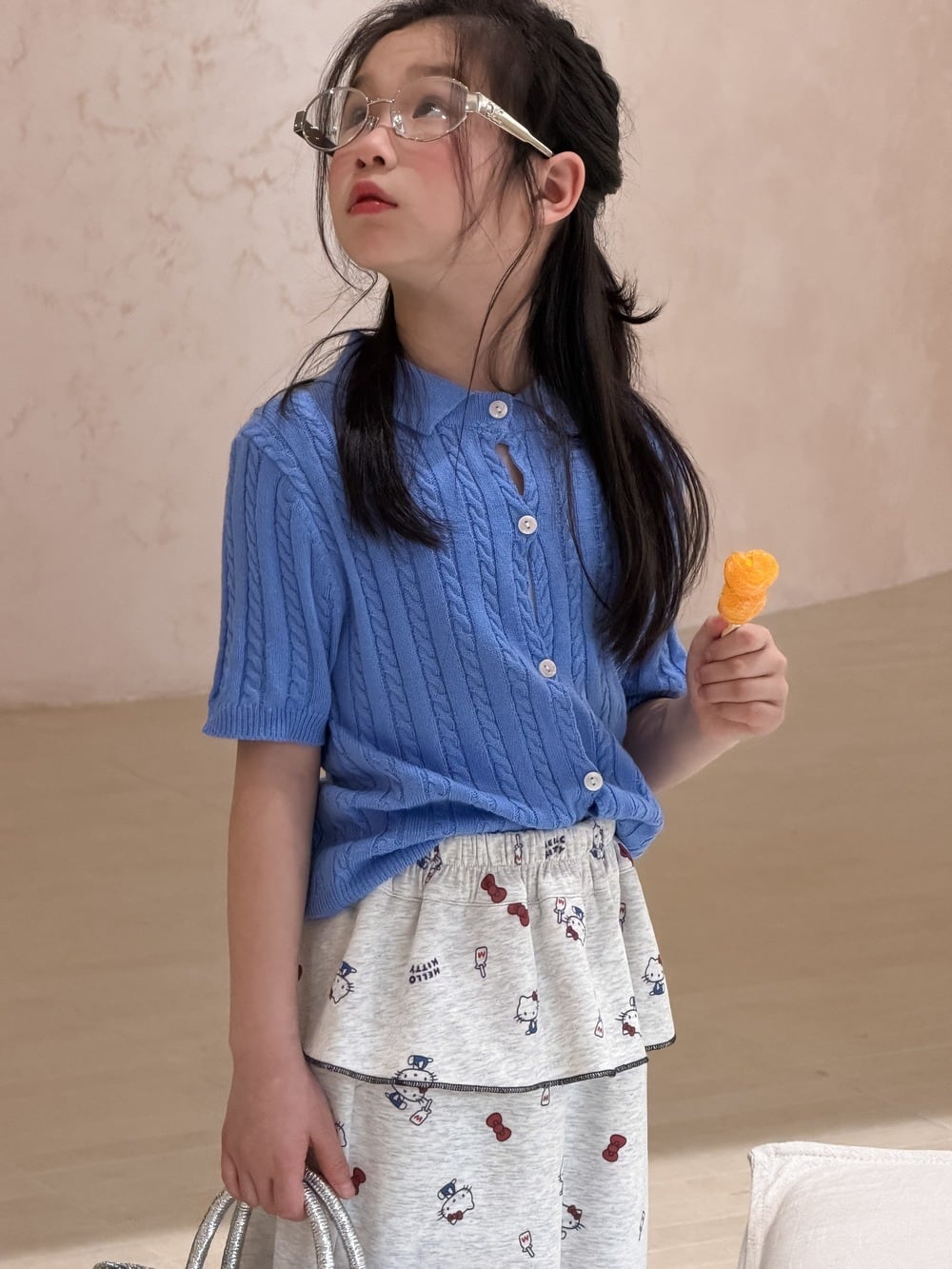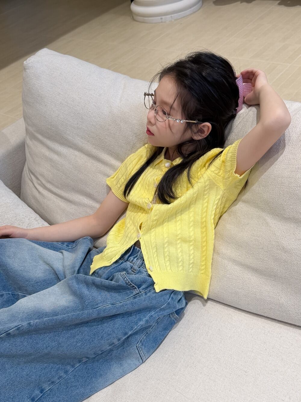 ケーブルニット襟付き半袖カーディガン(ブルー/イエロー)KMAI 2026春|100-160cm|トップス|春ニット|カーデ [取寄]