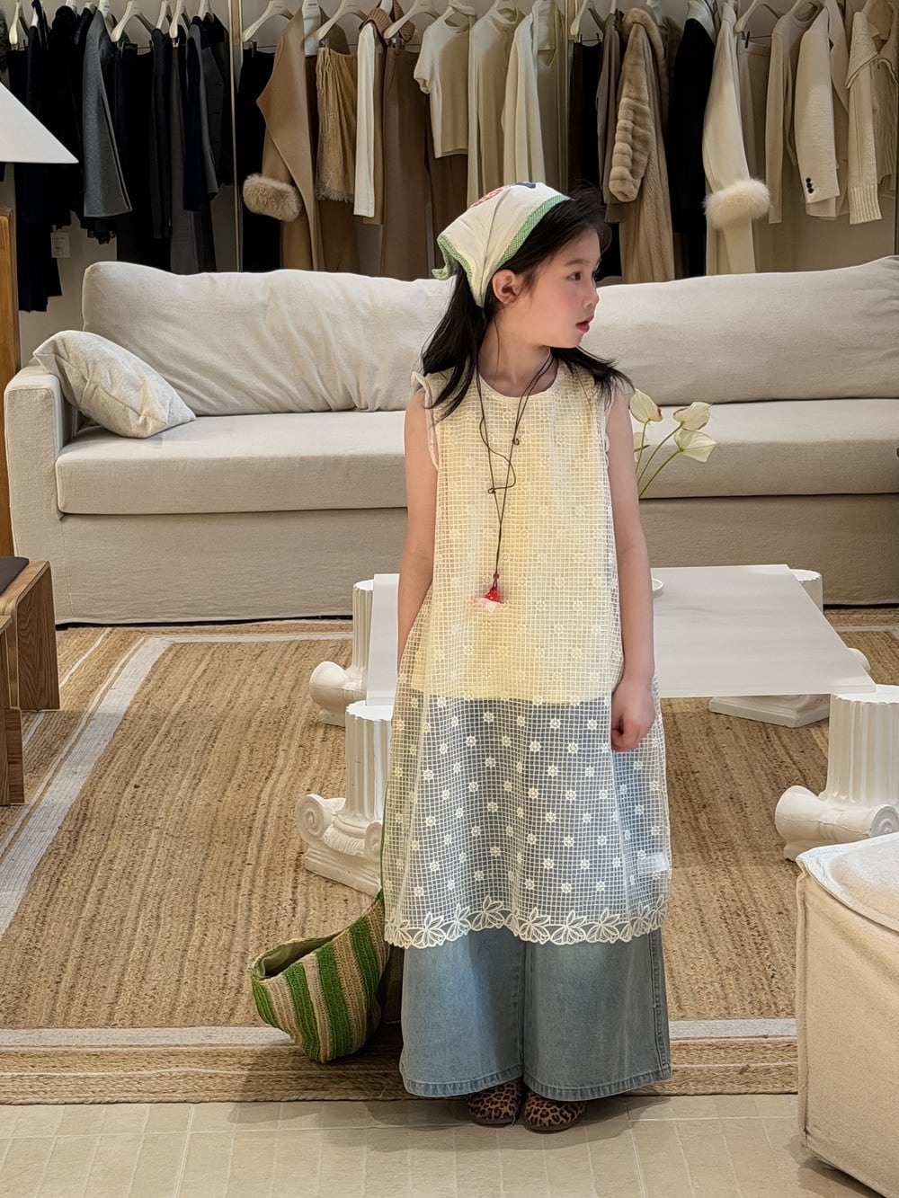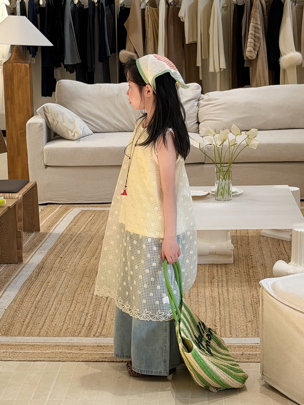 フラワーレースワンピース+タンクトップ(アイボリー)KMAI 2026春|100-160cm|ワンピ|チュニック|透かしレース [取寄]
