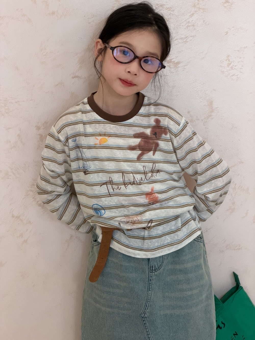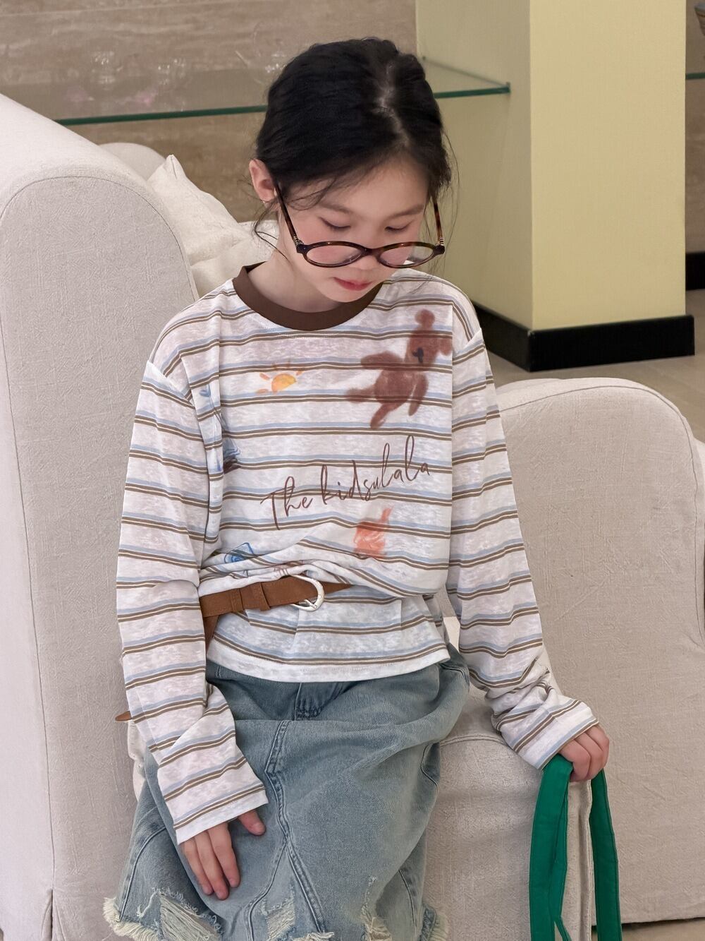 トップス/カットソー/Tシャツ/プリントT/長袖/ボーダー/らくがき/クマさん
