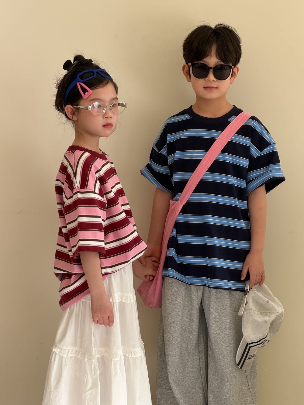 マルチボーダークルーネックTシャツ(ブルー/ピンク)KMAI 2026春|100-160cm|トップス|半袖|ボーダーT [取寄]