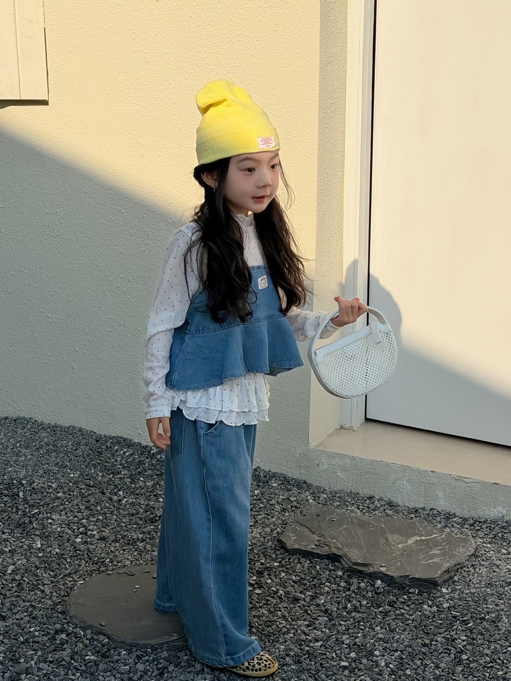 水玉フリルトップス(ホワイト)KMAI 2026春|100-160cm|ハイネック|薄手|ドット [取寄]